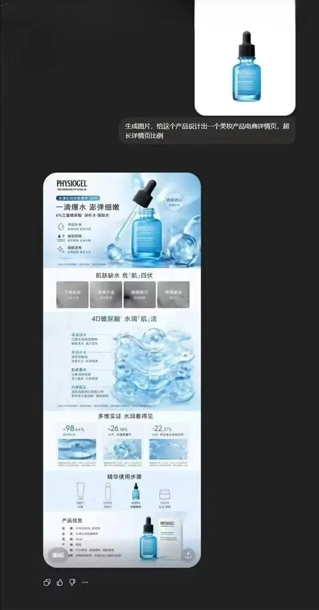 举个例子,生成一张电商图片,现在只需要输入简单描述,AI马上给你呈现一张完全可用的专业设计图。