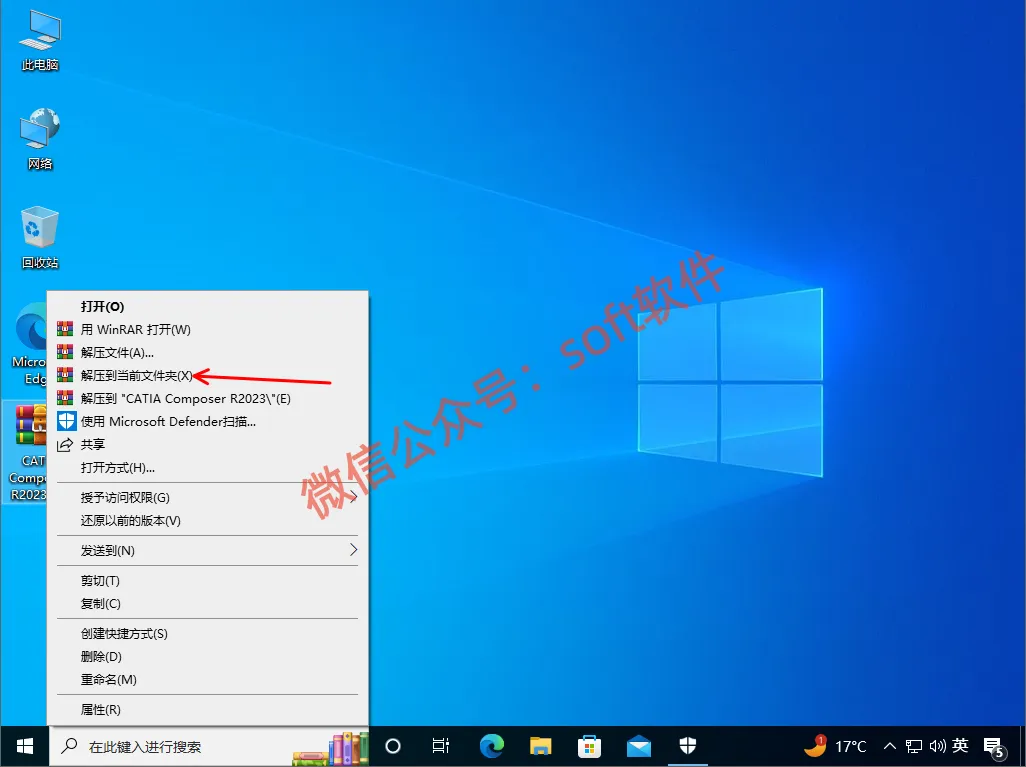 1,右键解压安装包至当前文件夹(注意,解压之前先关闭杀毒软件和window安全中心。)