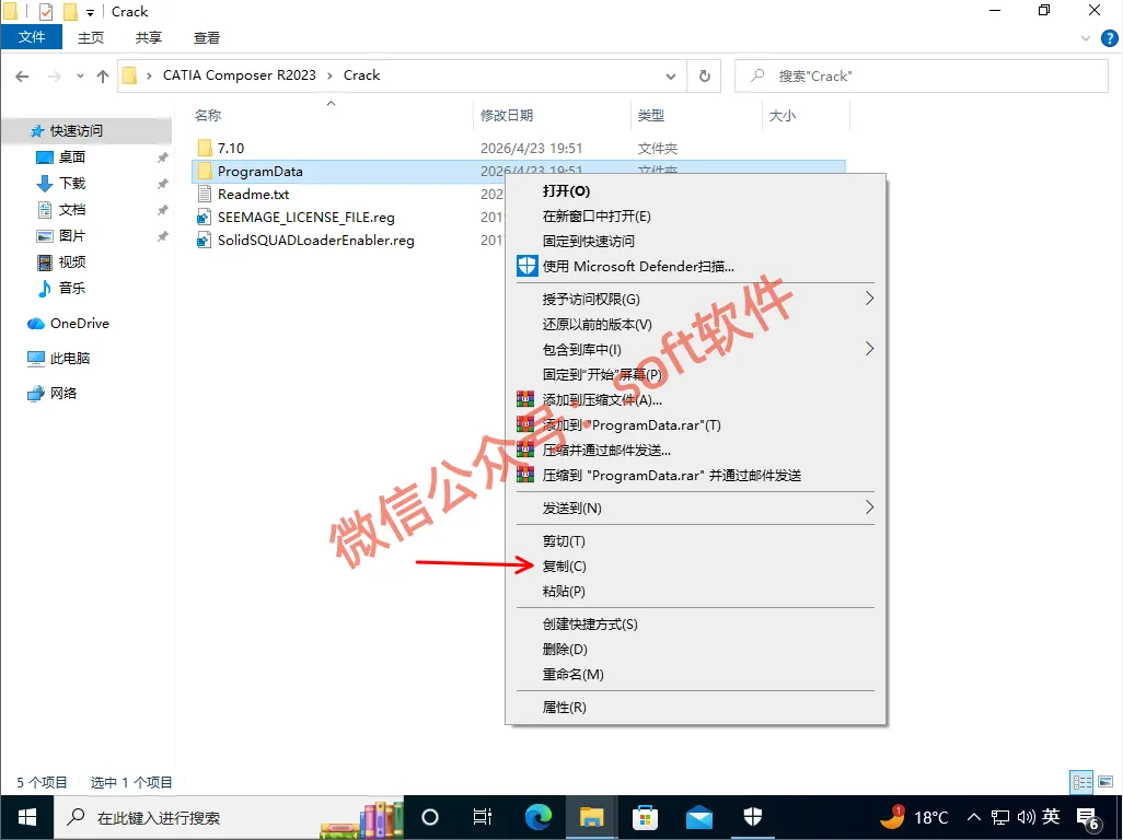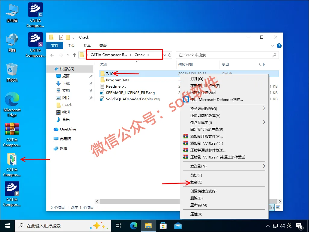 25,打开第一步解压的文件夹内,打开Crack文件夹,鼠标右键7.10文件夹,选择复制