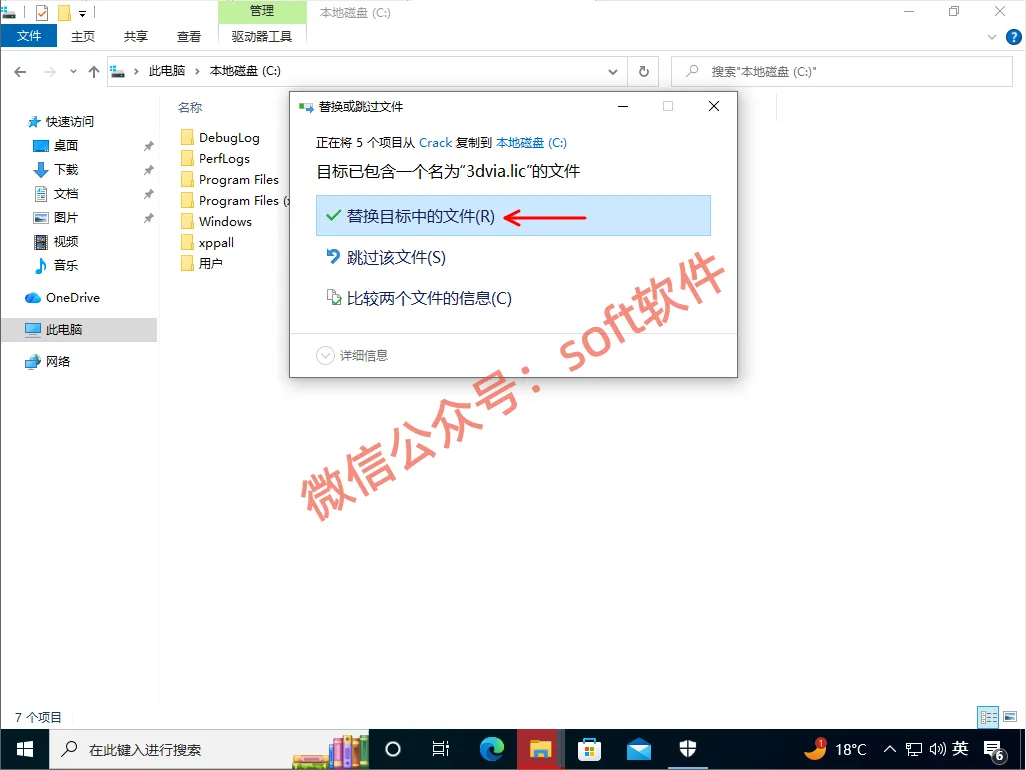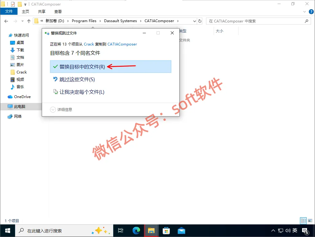 5,若提示替换,则点击替换目标中的文件,无提示可忽略