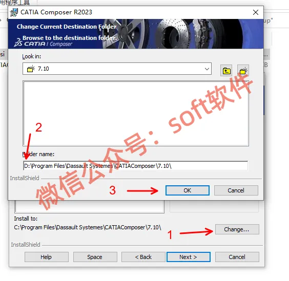 17,1:点击Change…;2:将安装路径首字母C改为D,或自己想安装位置,但路径中不要有中文;3:点OK