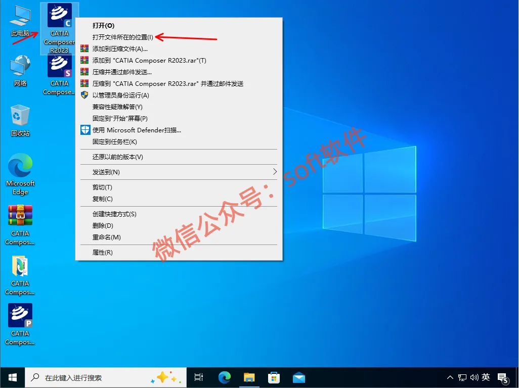 26,回到桌面,鼠标右键CATIA Composer R2023,选择打开文件所在的位置