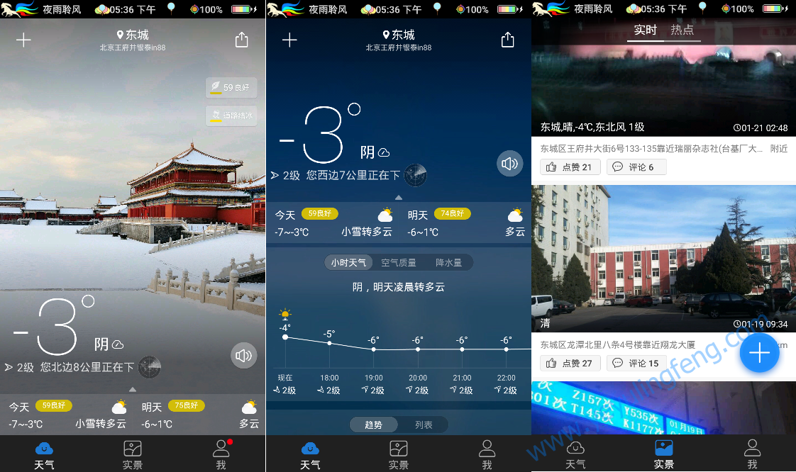 与墨迹一样最美天气也是老牌的天气应用之一,因为功能多预报精准曾经一度成为了不少手机出厂内置天气应用。至于开发者大家就更为熟悉一个逐渐被忘记了的宇龙酷派。最美天气用户基数非常庞大在加上有多年的基数积累,有着准确的数据源,人性化设计,漂亮的城市背景,简洁的操作布局,查询天气信息的同时,还能轻松掌控更全面的生活指数,支持多城市查询管理!作为一款免费应用广告算是不可避免,启动页以及天气详情页的推广信息经常容易误触令体验大打折扣,倘若家中老人以及熊孩子操作不当往往会被广告引导下载一堆毫无用处的APP。市面上天气应用不在少数但是功能实用性精准度上确实比不过最美和墨迹这两巨头,如果平时经常使用最美天气的用户今天老夜分享的这款去广告纯净版就是最佳选择!