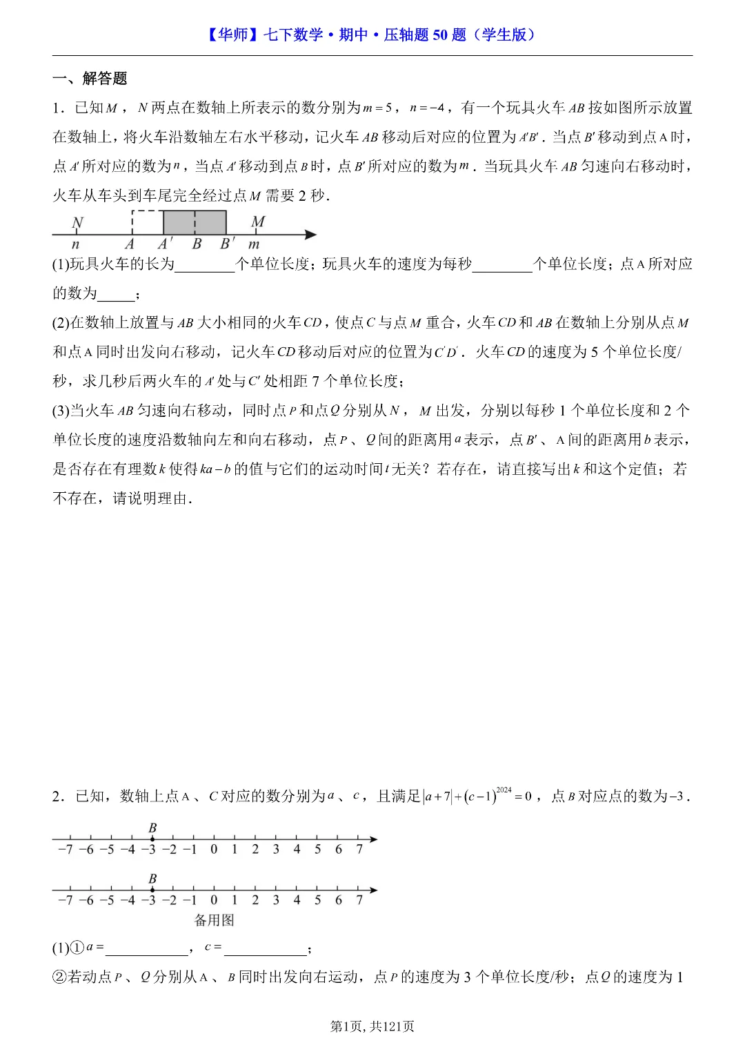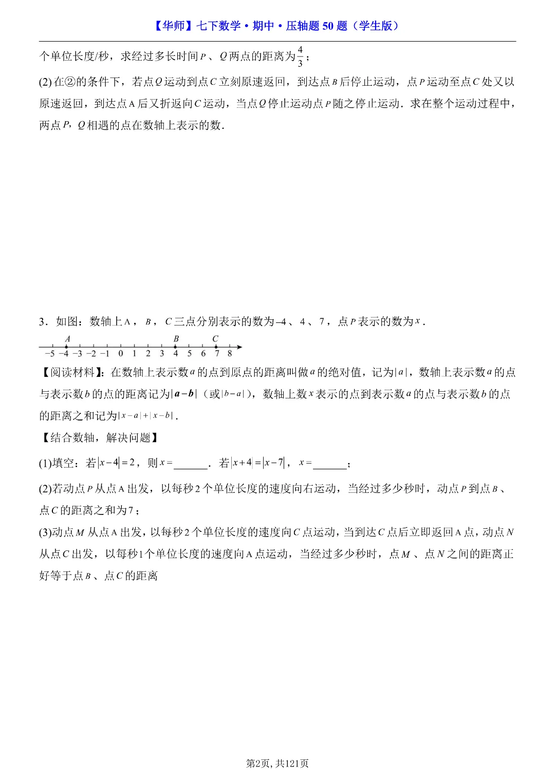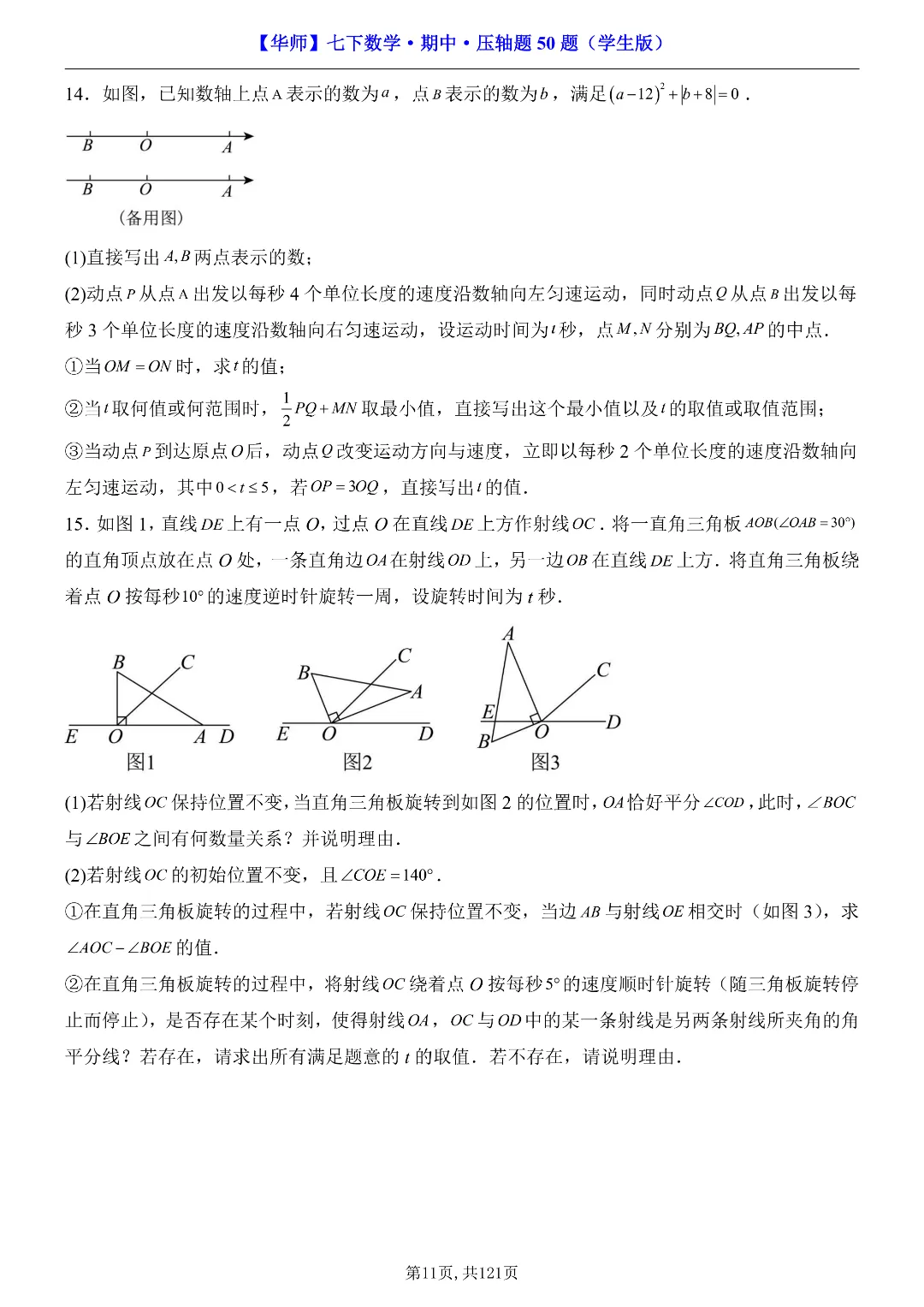 ✨今日给家长朋友们分享的是:2026年春新七年级下册华东师大版数学《期中考试压轴题专项训练》附答案 电子版可打印