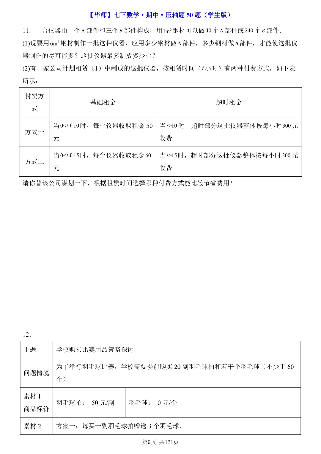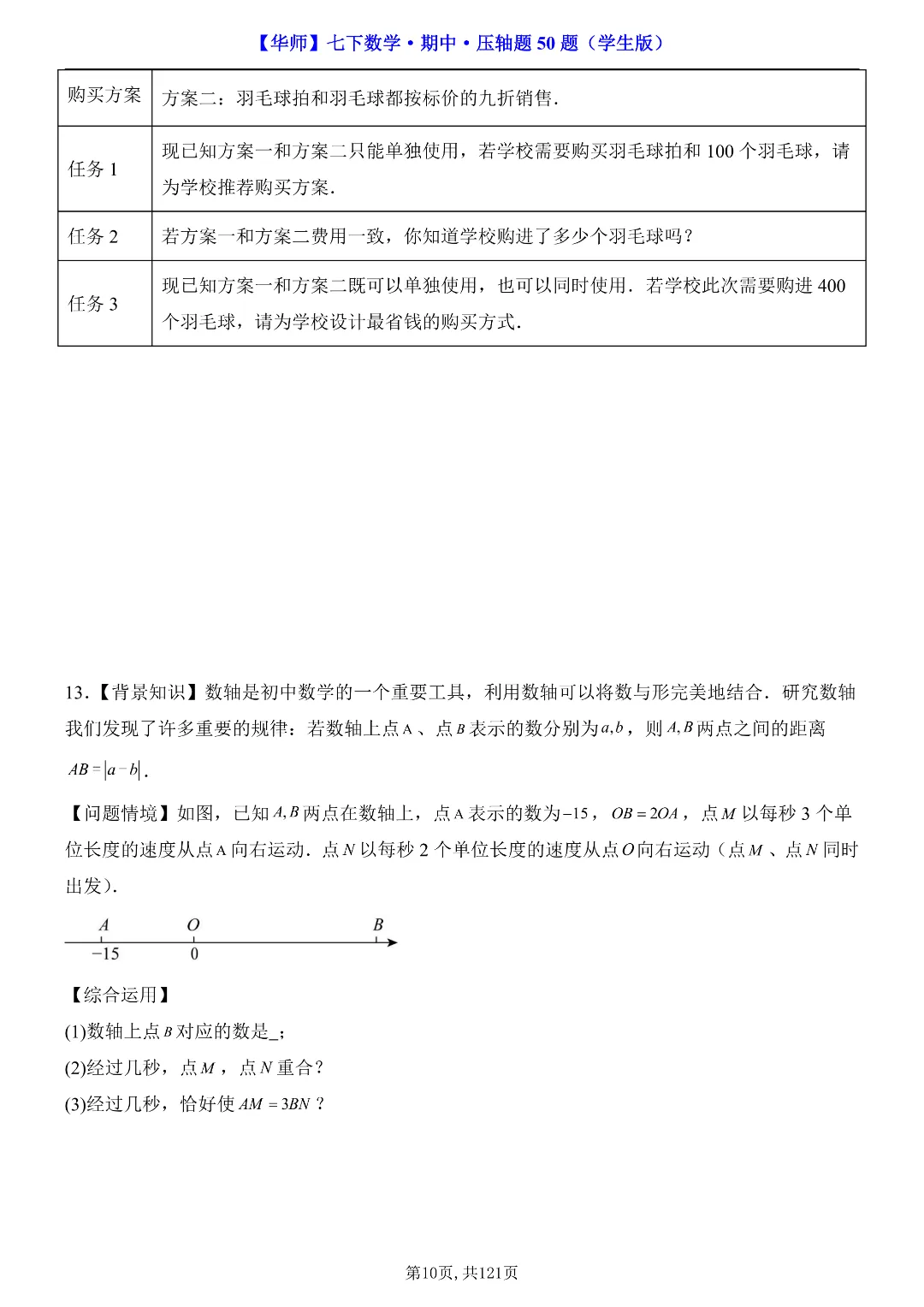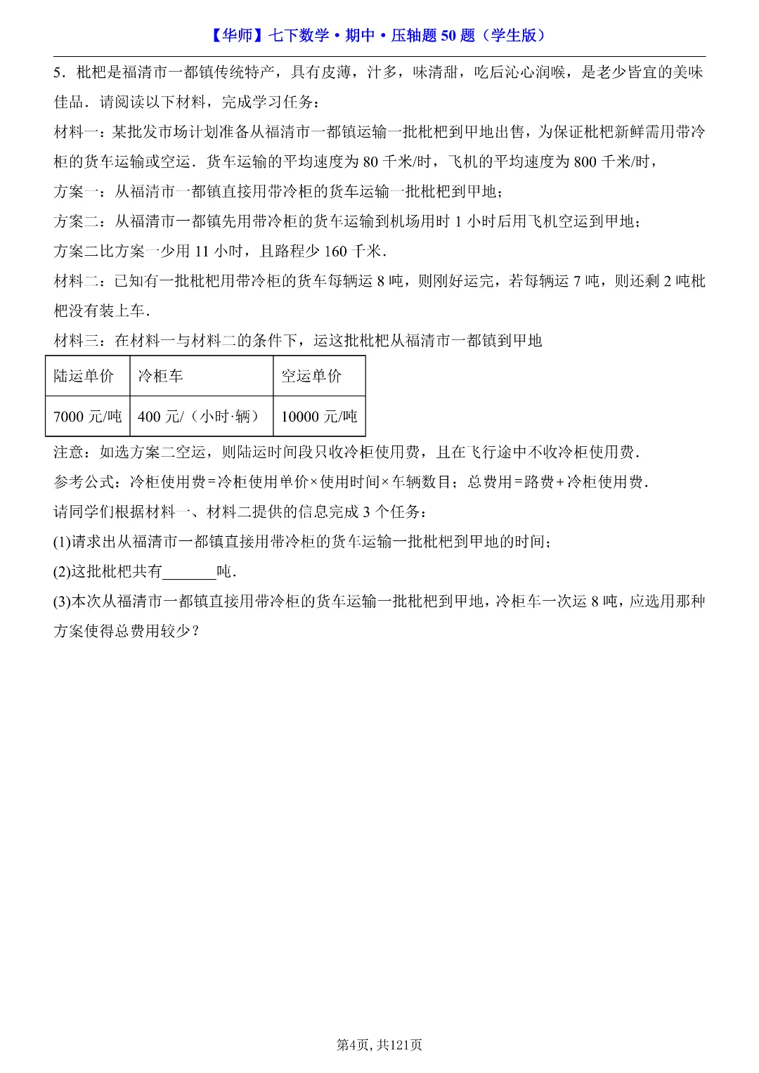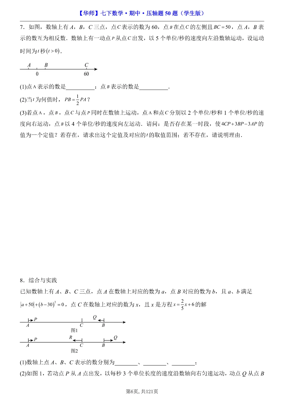 ✨今日给家长朋友们分享的是:2026年春新七年级下册华东师大版数学《期中考试压轴题专项训练》附答案 电子版可打印