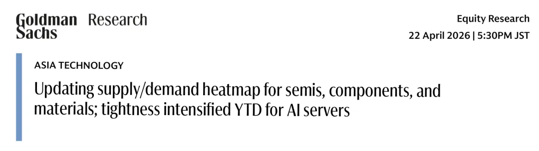《高盛-亚洲科技:更新半导体、零部件及材料供需热力图,年初至今AI服务器紧缺加剧-Updating supplydemand heatmap for semis,components,and materials;tightness intensified YTD for AI servers-20260422【10页】》