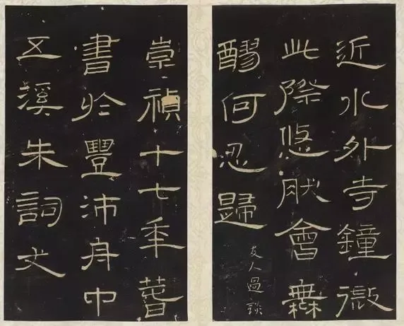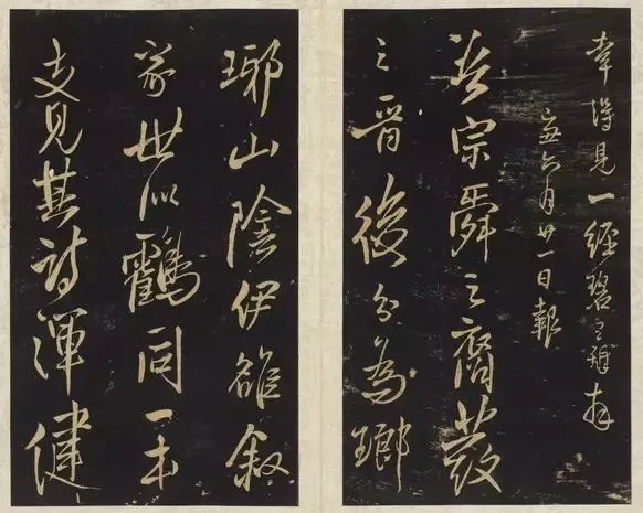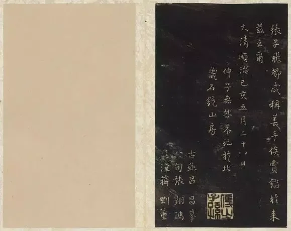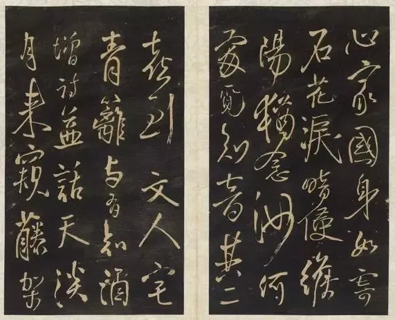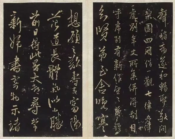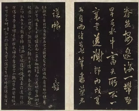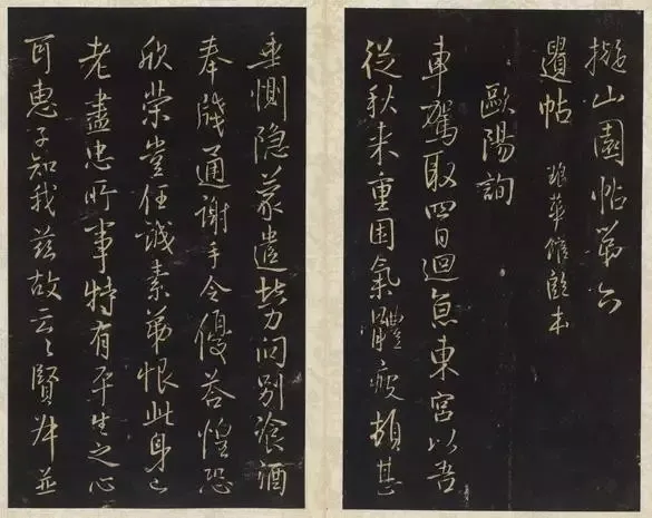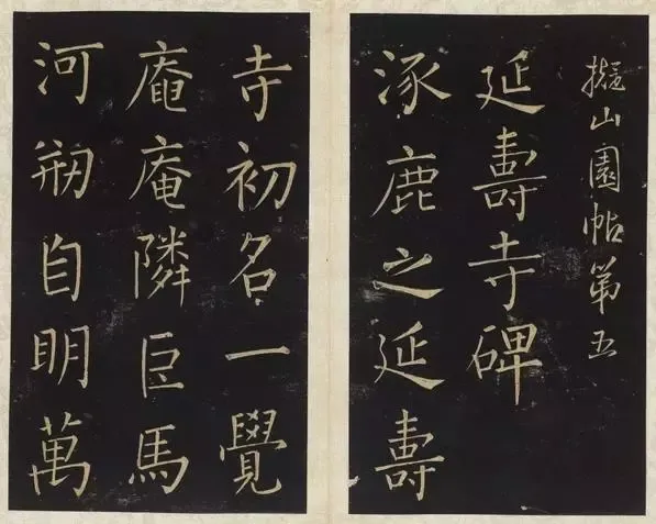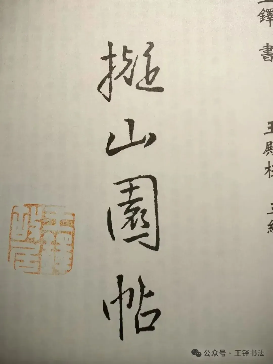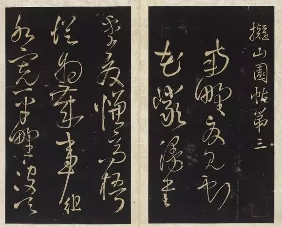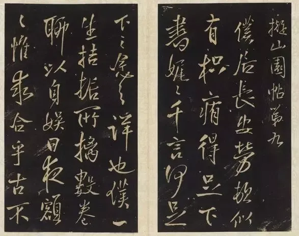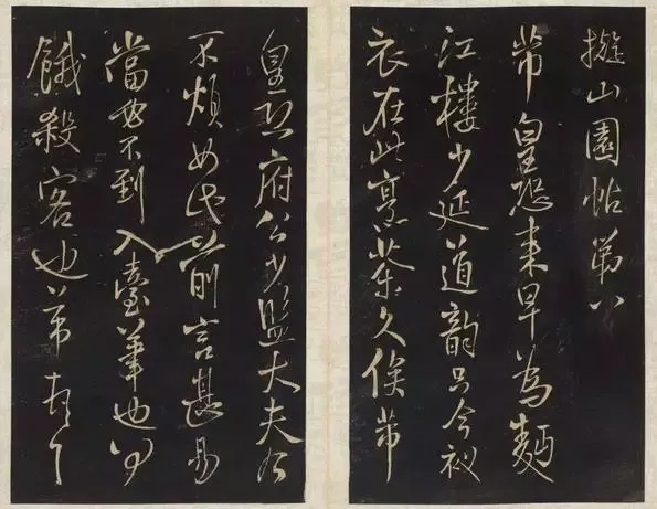《拟山园帖》,共十卷,清代个人丛帖。清顺治八年至十六年(公元1651-1659年)王铎之子无咎撰集,古燕吕昌摹,张翱镌。帖名行书。此帖全刻王铎一家之书,共103种,其中大多为临古之书。王无咎传留大量的王铎书迹,因而所选皆精湛。刻者亦一时名手,而其它王书刻帖均不如此本为佳,帖后有张缙彦、龚鼎孽及无咎题跋。张缙彦跋曰:“文安公书法妙天下,藉茅太史括所藏书及墨苑家所流传汇集此本,有缺略模糊必求别本正字补之,备极龙跃虎卧猊攫象搏之致,文安四十年精力尽在此矣。近代玄宰、子愿两先生戏鸿、来禽二帖,坛坫海内,昔卫夫人见右军书叹:’此子必掩我名’,此本出,惜两公不及见也。”故此帖无论是所选之帖还是摹刻方面,都极为精妙,远胜《琅华》、《银湾》、《诗酒论》、《二十帖》等帖。