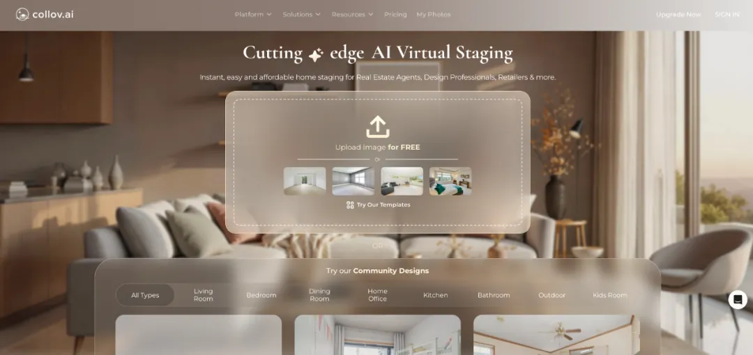 Collov AI是人工智能室内设计工具,能够根据您上传的房间照片或户型图,快速生成多种风格的3D室内设计效果图。汇集了室内设计、AI、3D渲染等多种技术和服务,让您只需上传一张房间照片,选择喜欢的风格,Collov AI就能生成3D设计效果图。