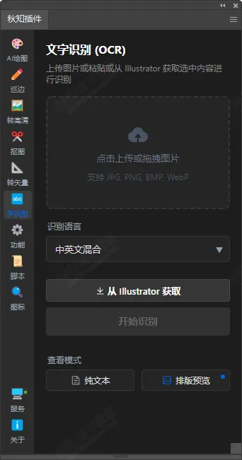 对于设计师来说,文字处理也是日常工作中不可或缺的一部分。AI秋知插件V4.1的文字识别(OCR)功能支持从图片或Illustrator文件中提取文字内容,并支持中英文混合识别,极大地提高了文字处理的效率。同时,标准矢量化功能则能将位图转换为矢量图,保留图像的清晰度和可编辑性,方便后续的设计调整。