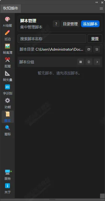 除了上述功能外,AI秋知插件V4.1还提供了强大的脚本管理功能。设计师们可以集中管理自己的脚本,通过搜索、分组等方式快速找到所需的脚本,并一键运行。这不仅节省了大量时间,还能让设计师们更加专注于创意本身,释放无限的创意潜能。