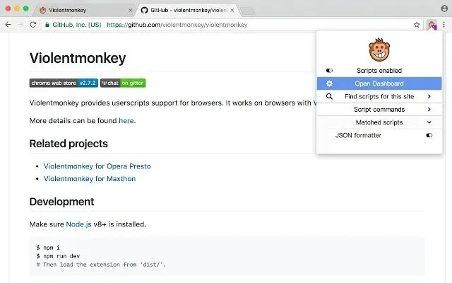 开源的用户自定义脚本管理插件,ViolentMonkey 暴力猴 V2.36.0 分享
