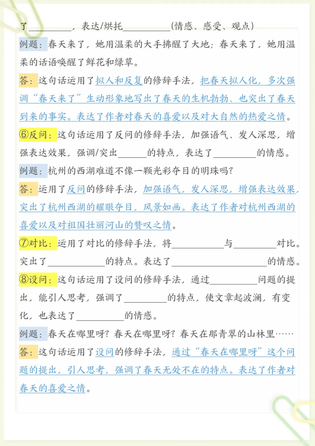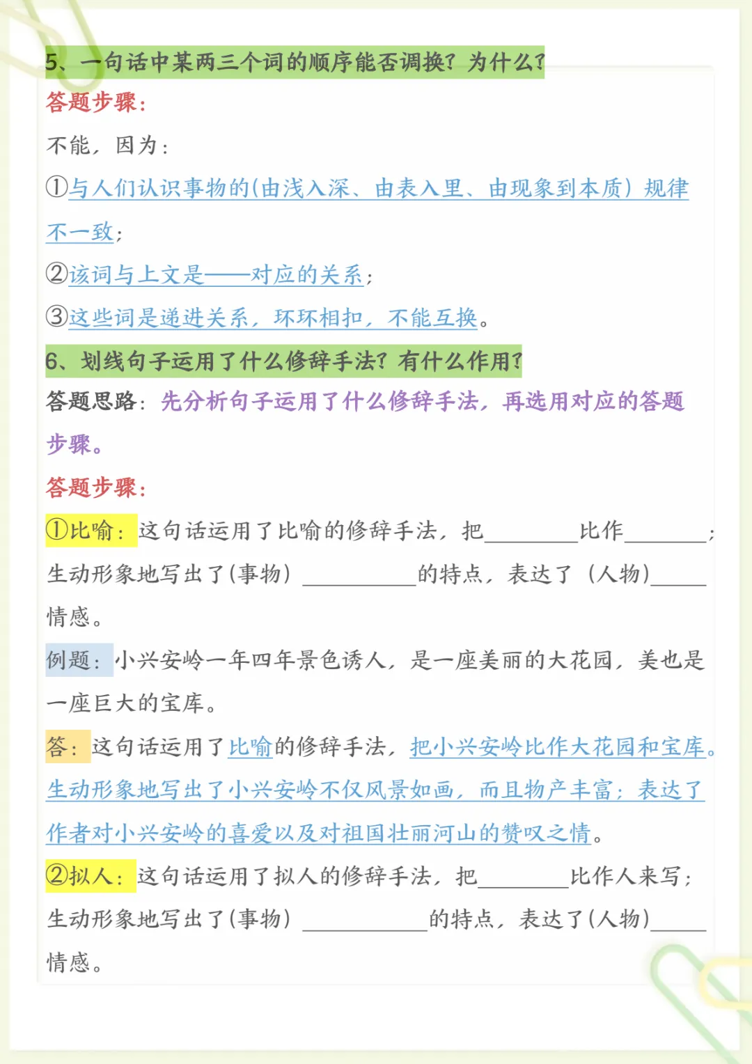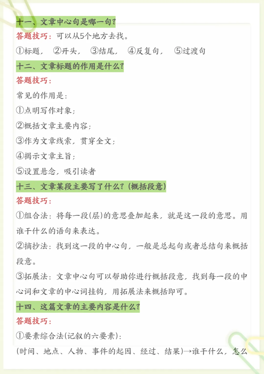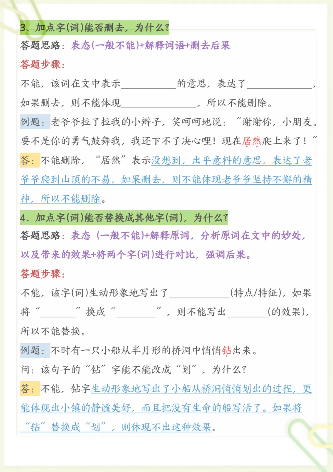 三年级下语文阅读理解常考题型和答题技巧,电子版可打印