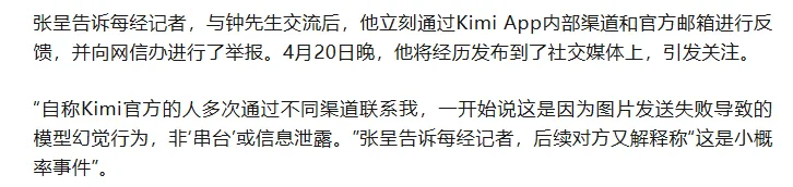 大意就是A用户把自己简历发给了AI润色,然后B用户在使用AI的时候,几轮对话后,AI把A用户的简历发给了素不相识的B用户,B用户顺藤摸瓜联系到了A,确认了信息的真实性。