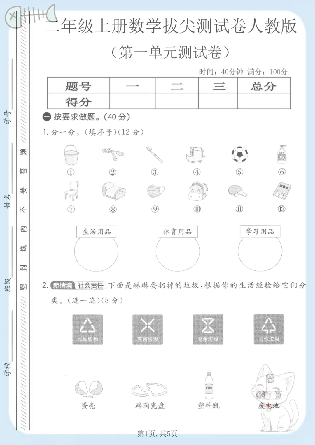 二年级上人教版数学第一单元拔尖测试卷,共5页,电子版可下载可打印,这份练习紧扣二年级上册数学第一单元内容,涵盖多个核心知识点与专项训练内容,题型设置有针对性,适合孩子在学完单元知识后进行巩固提升与查漏补缺,帮助家长更高效地陪孩子梳理重点、强化基础。需要的家长可以及时保存打印出来,让孩子练一练。