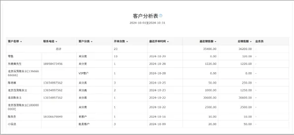 想知道客户的开单情况,可以打开秒账的【客户分析】,对于最近频繁上门开单的客户,进行级别提升,升级成会员客户或者老客户,给予更多优惠力度,从而有利于更好地留住客户。