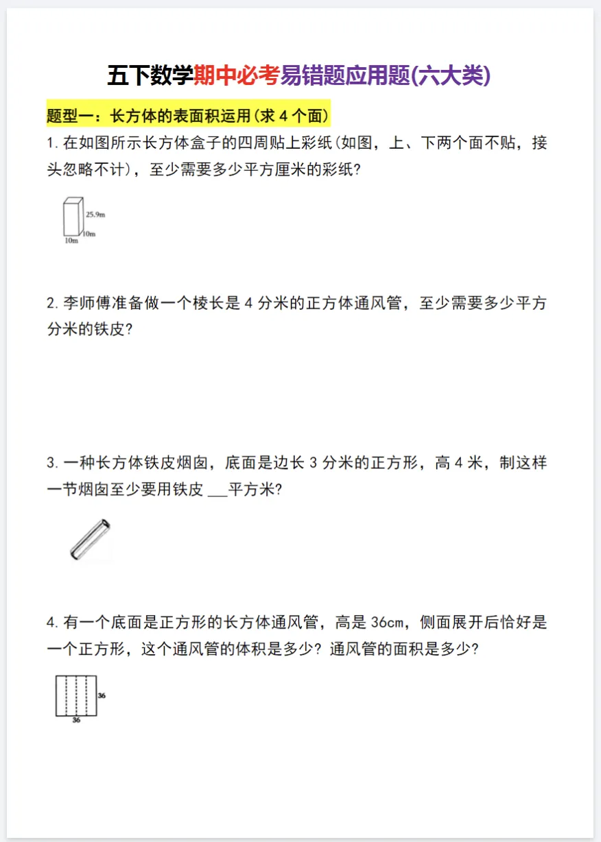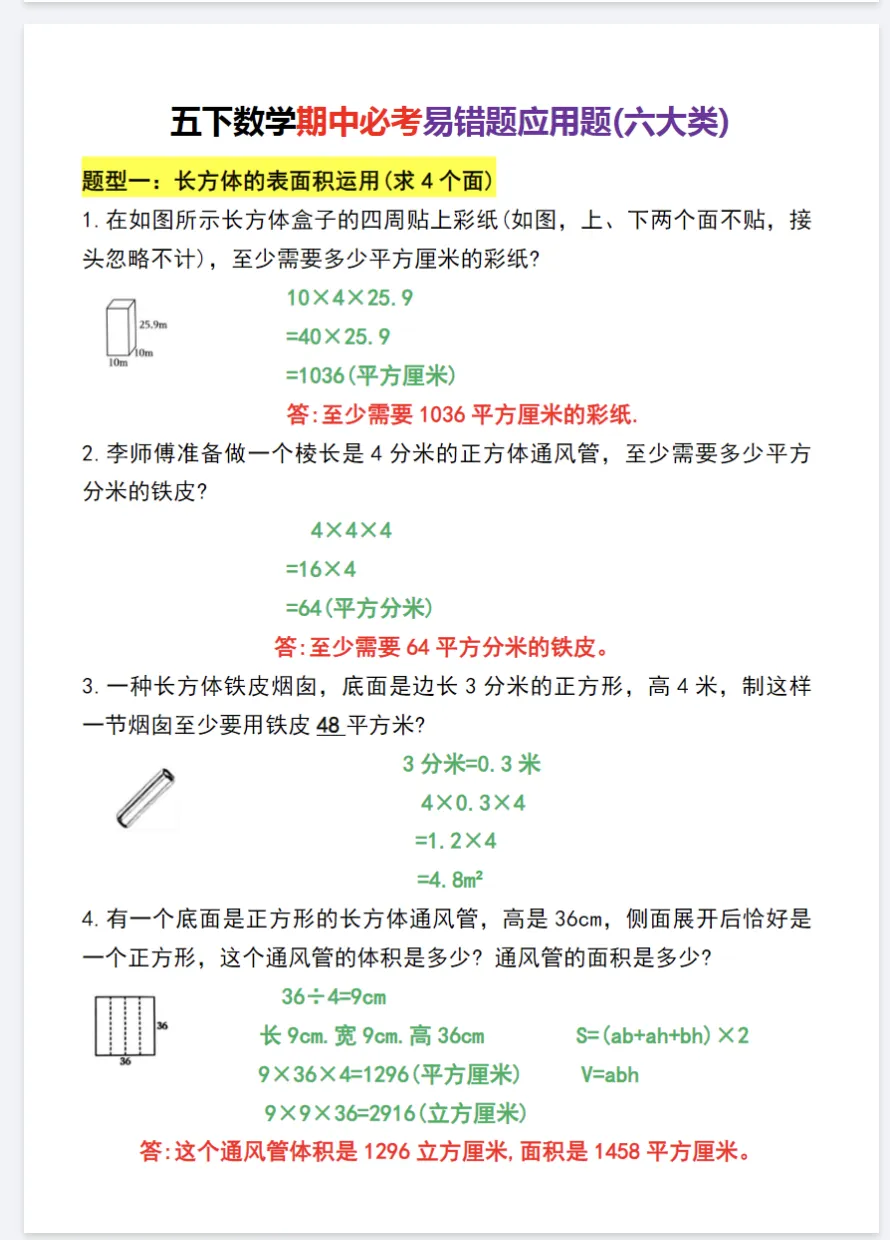 【2026年】五下通用版数学【期中必考易错题型汇总(六大类)】可打印