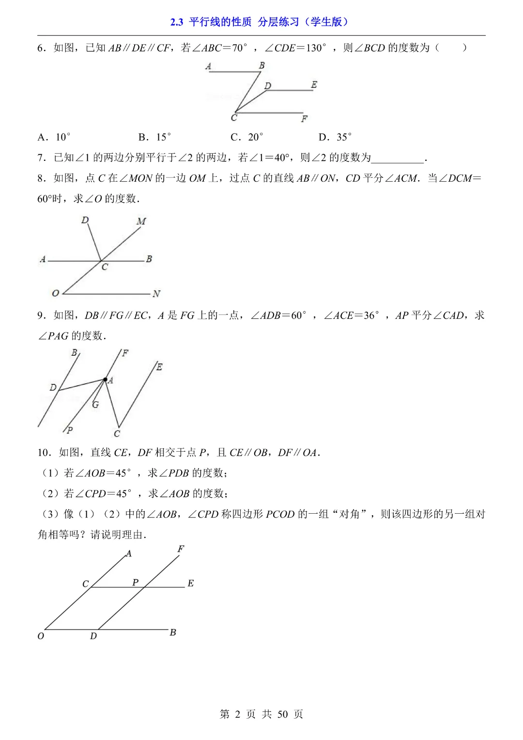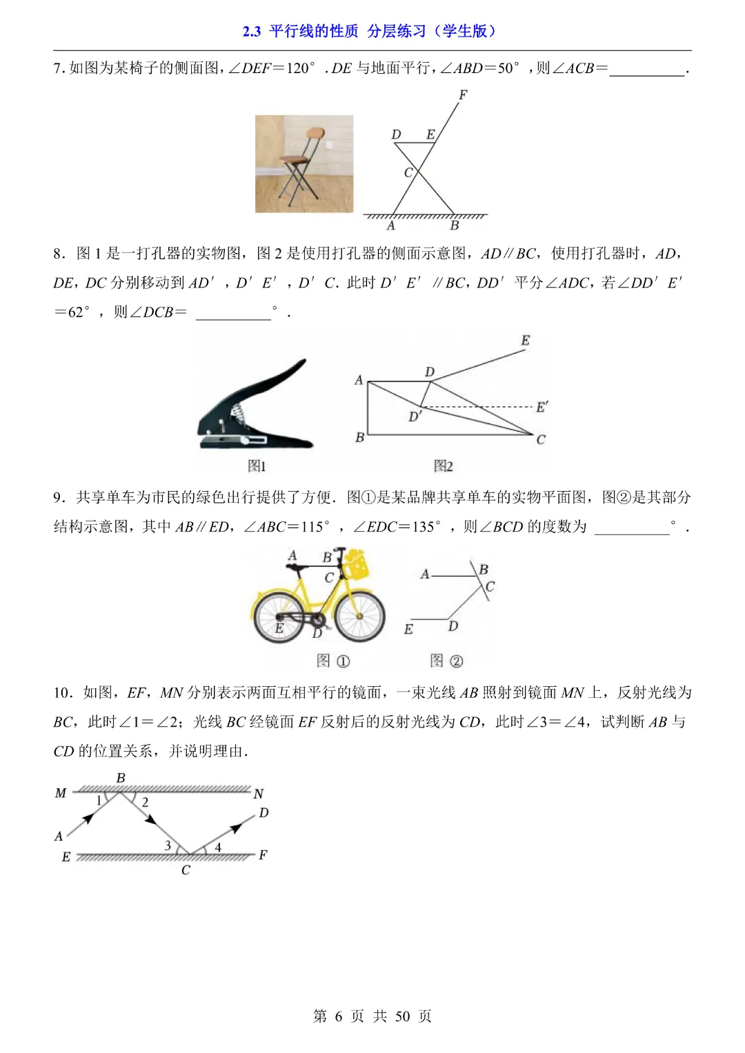 今天给大家分享的是:【七年级下册数学】【北师大版】2.3 平行线的性质分层练习带答案|完整高清电子版可打印