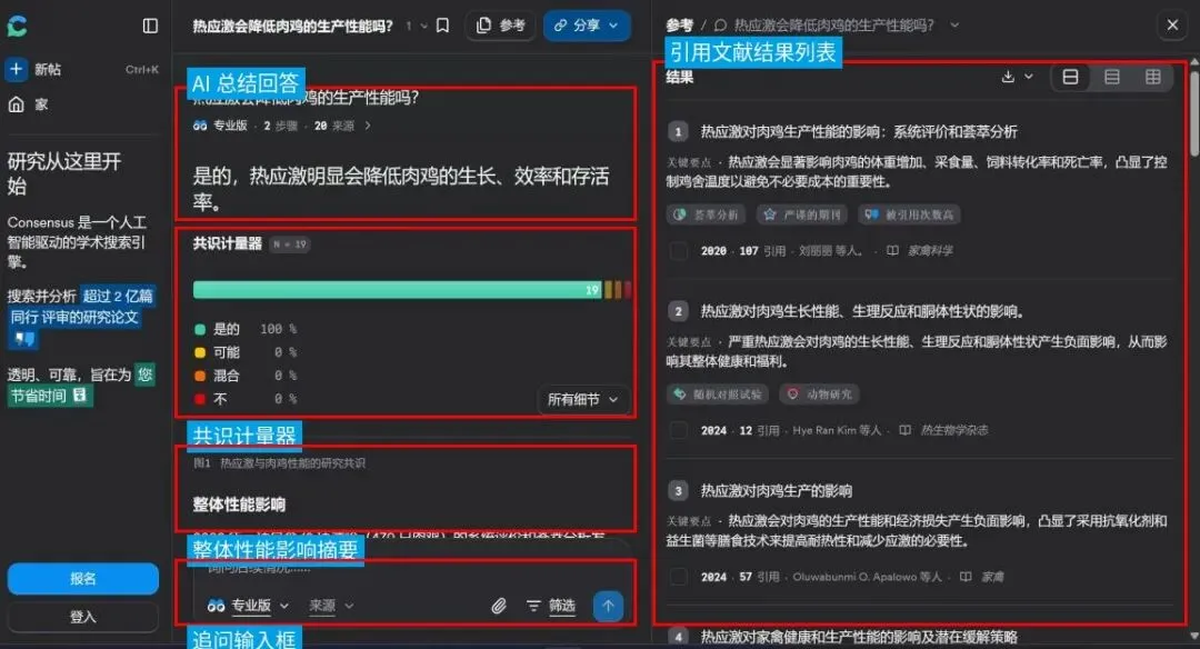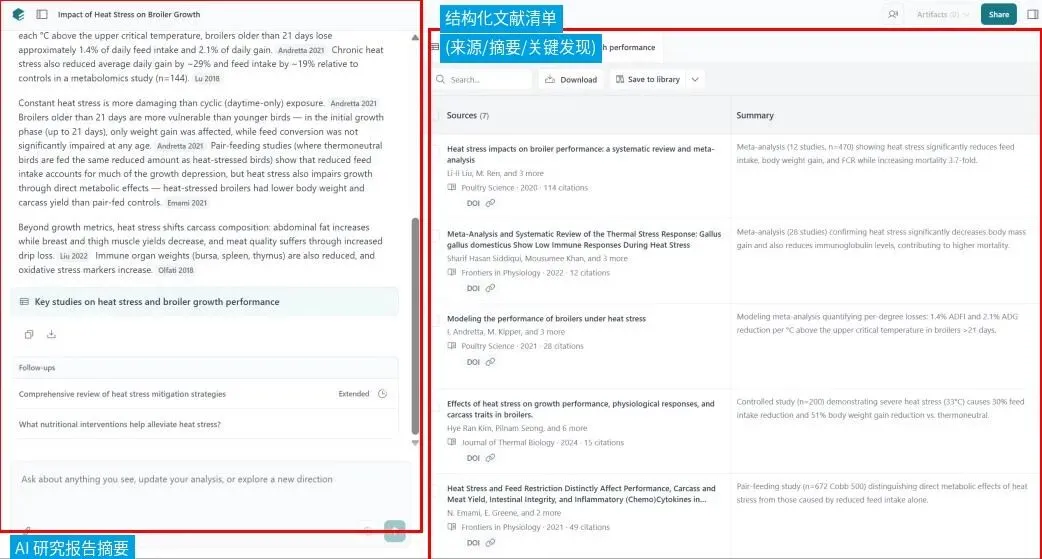 下面,我们统一用“热应激对肉鸡生产性能的影响”这个研究课题为例,带你走一遍——从不知道该读什么到能讲清楚这条研究线,到底应如何运用科研AI工具高效完成。