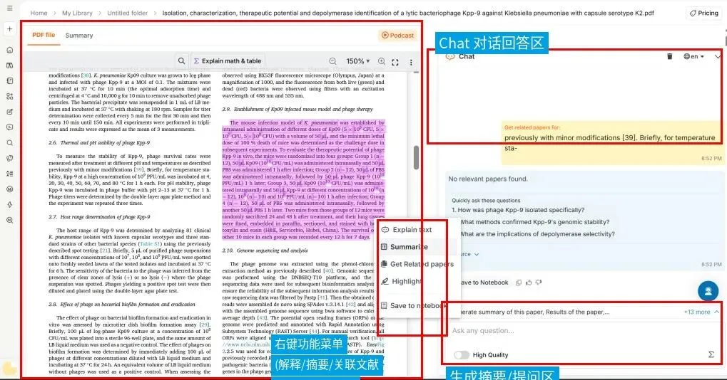 图7 SciSpace PDF深度阅读界面
