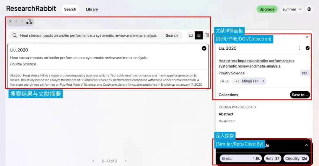 如果你已经找到一篇和“热应激、肉鸡生产性能”高度相关的研究论文,那么接下来可以在Scite里进行下面的操作。