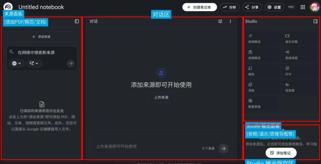 工具简介:NotebookLM 支持导入 PDF、网页、文档等多种来源,并围绕这些来源进行问答、总结和整理,它更像一个围绕个人资料库展开的研究整理工具。