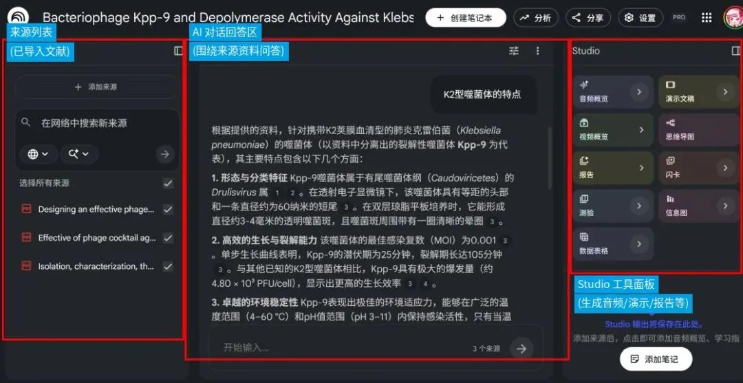 图11 NotebookLM资料问答界面