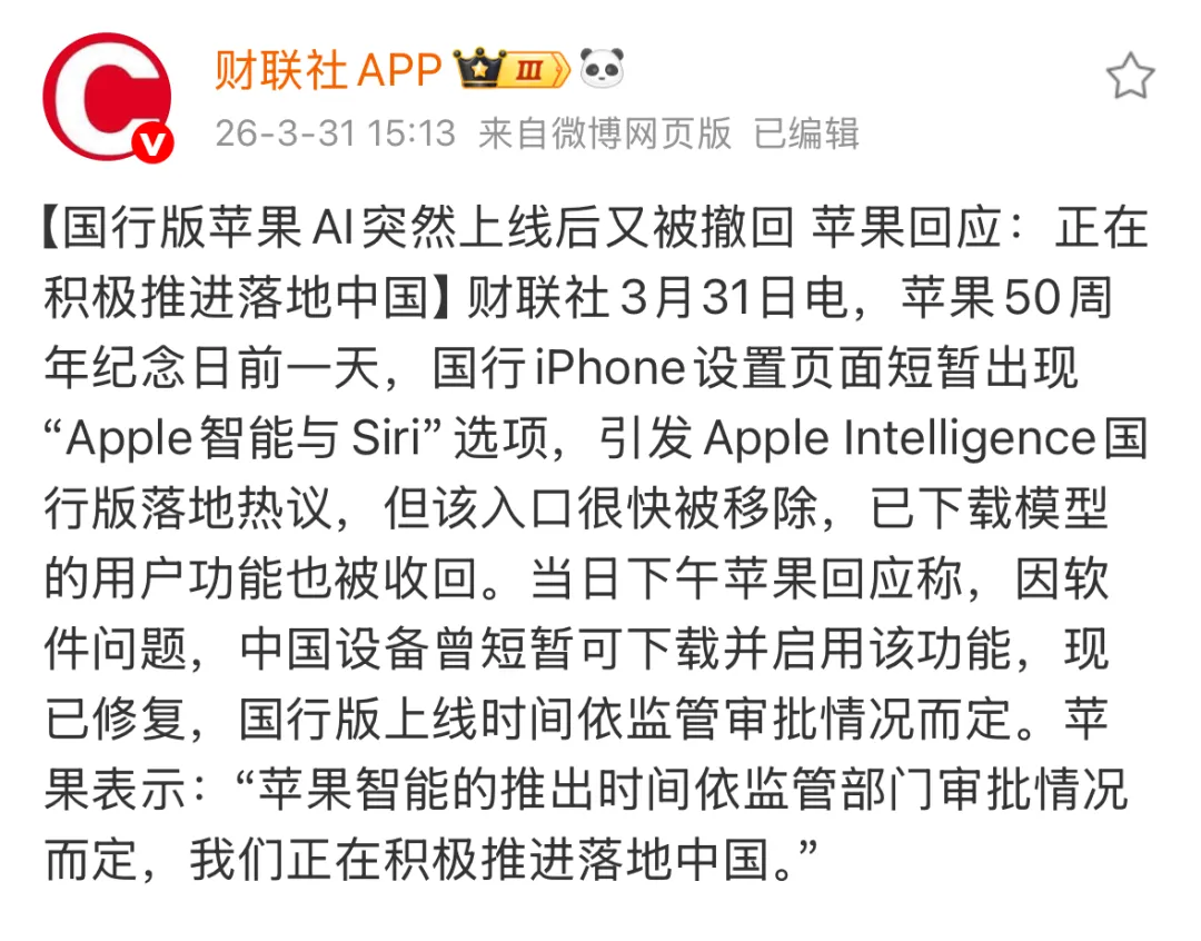 国行 AI 突然上线,苹果回应!