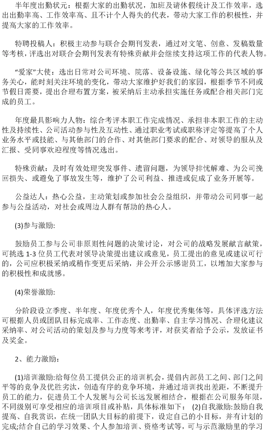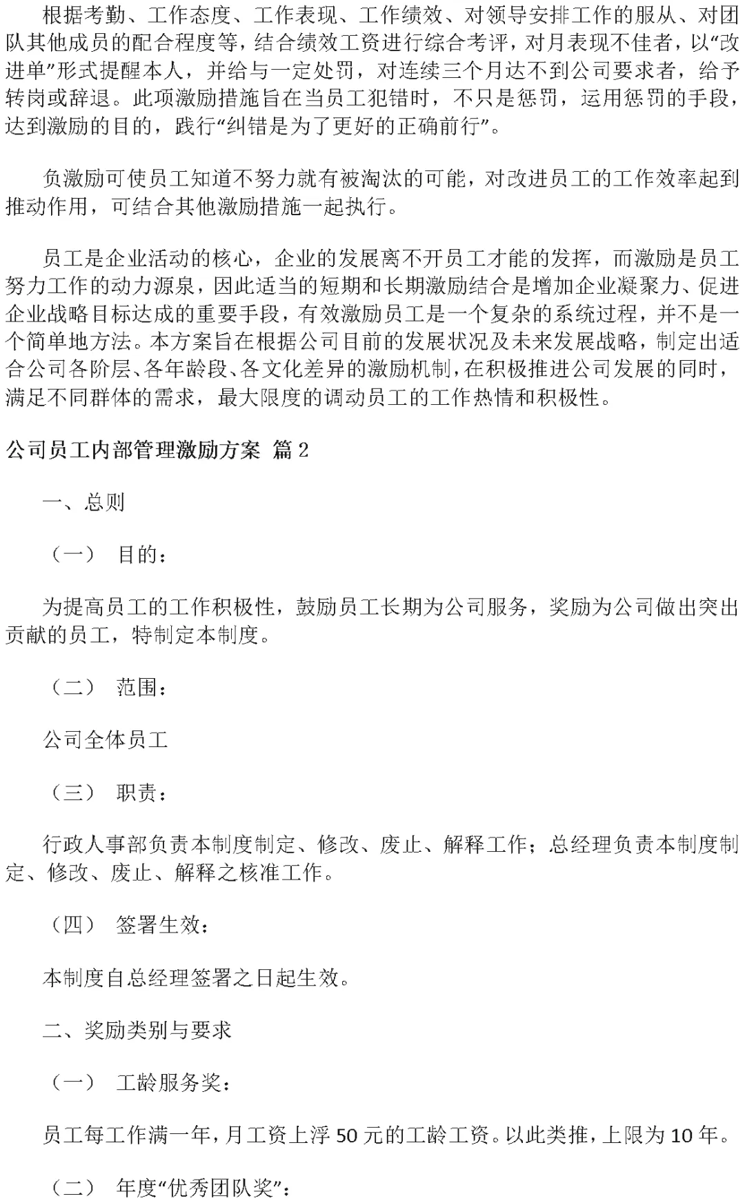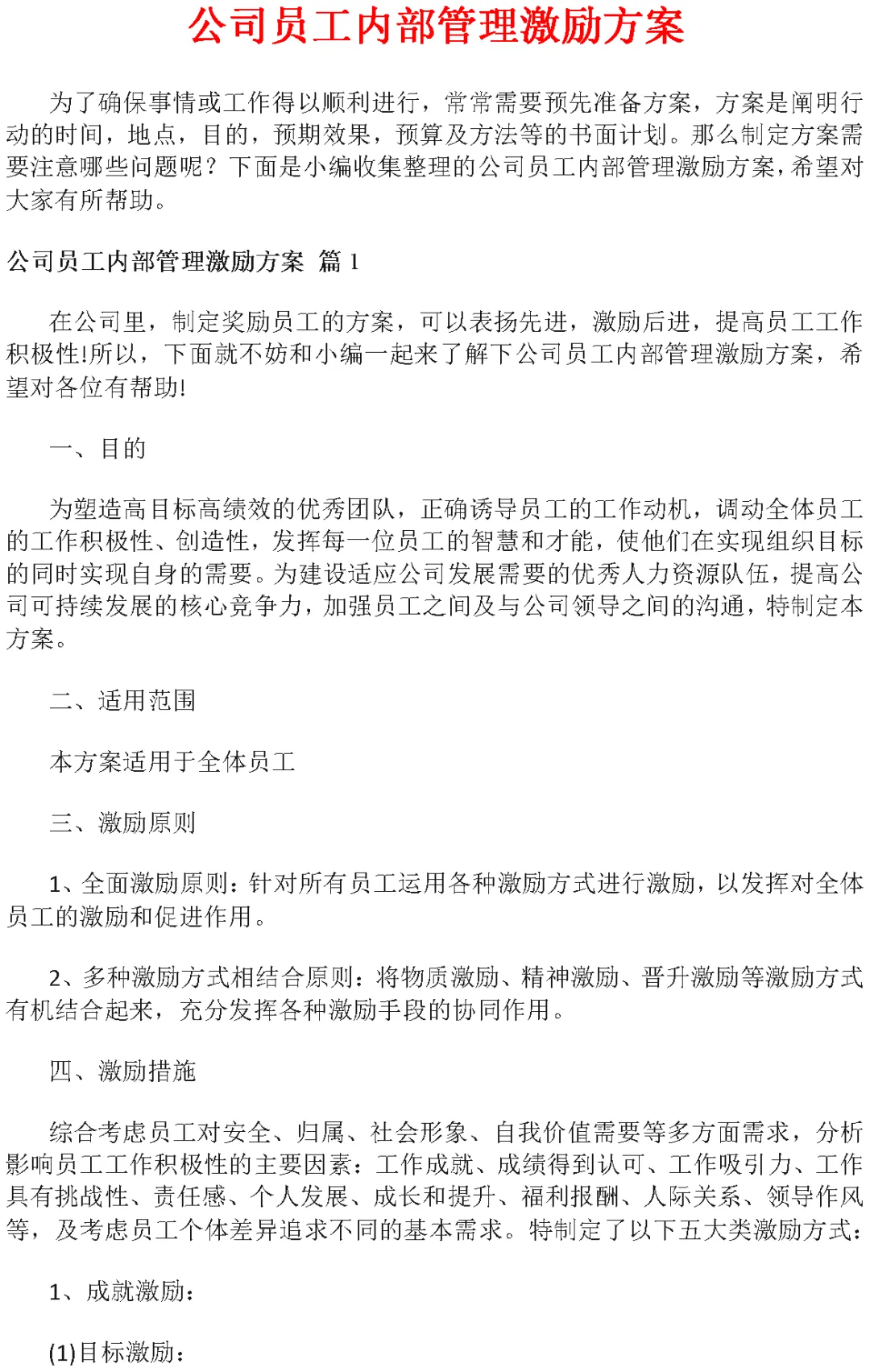 公司员工内部管理激励方案(Word模板)