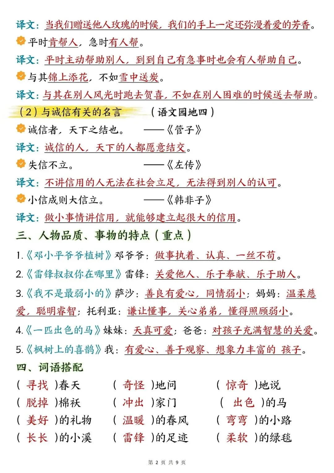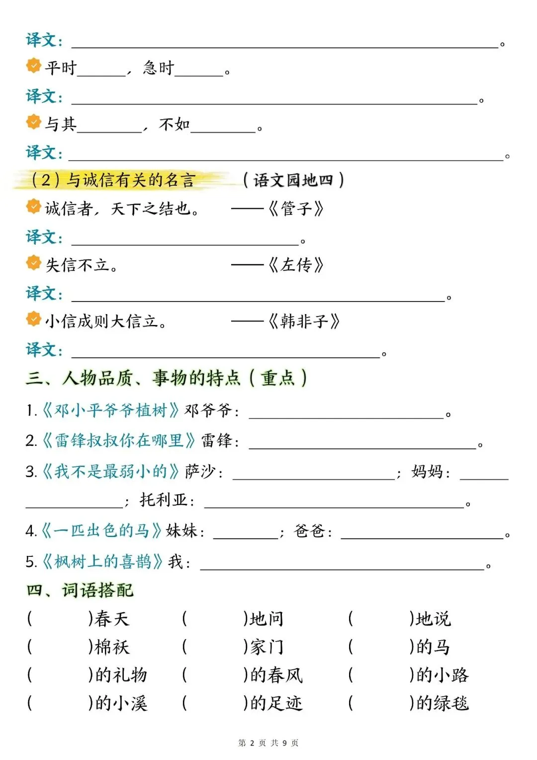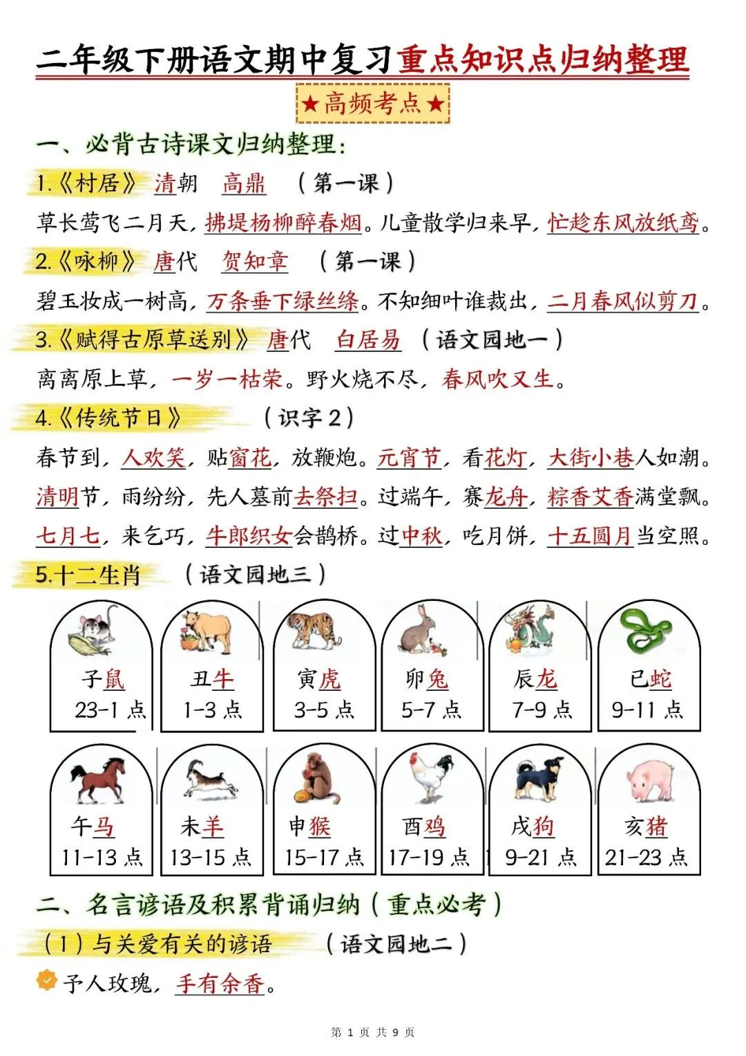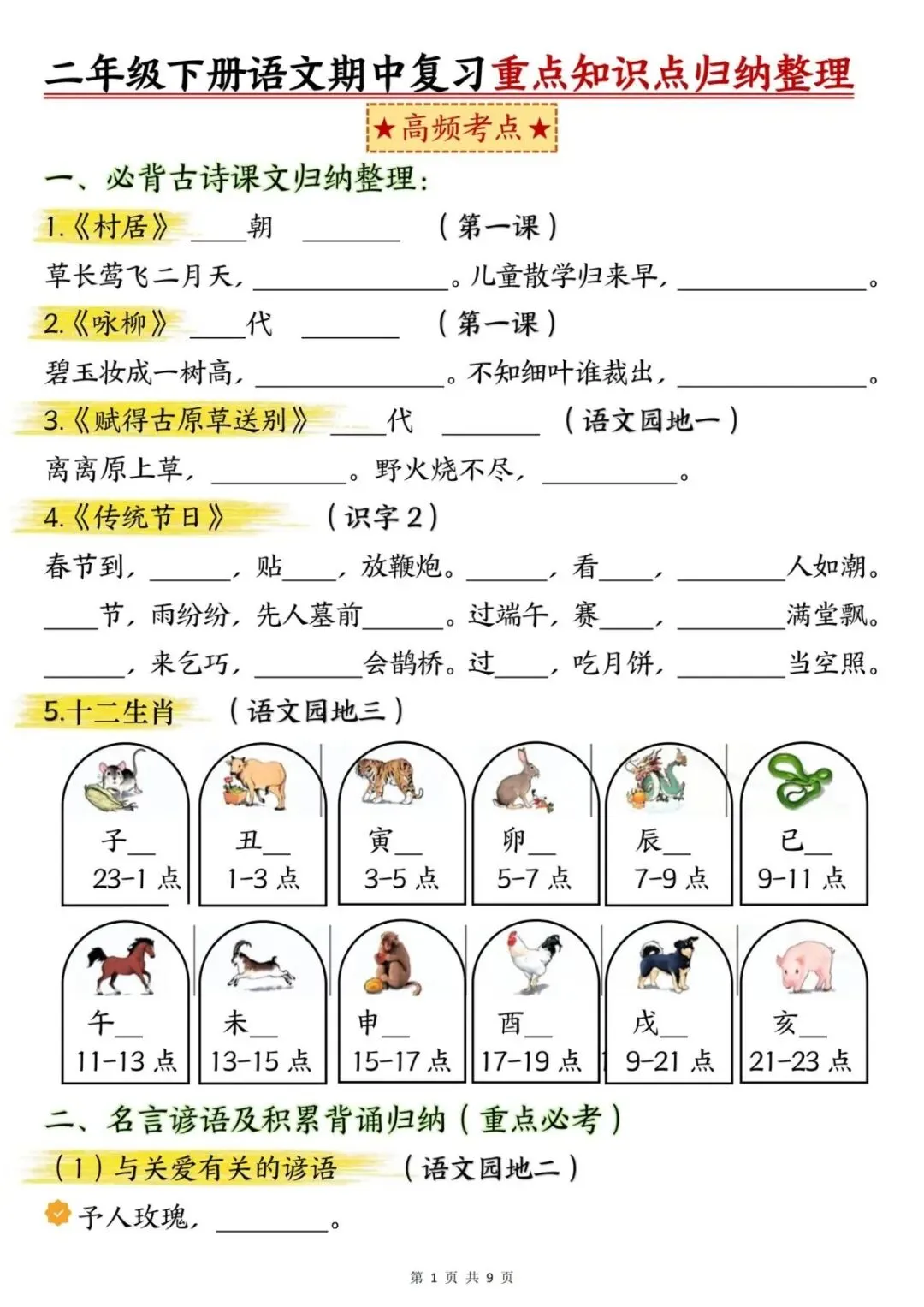 26年春新版部编版二年级下册语文《期中复习知识点汇总》,电子版可下载打印