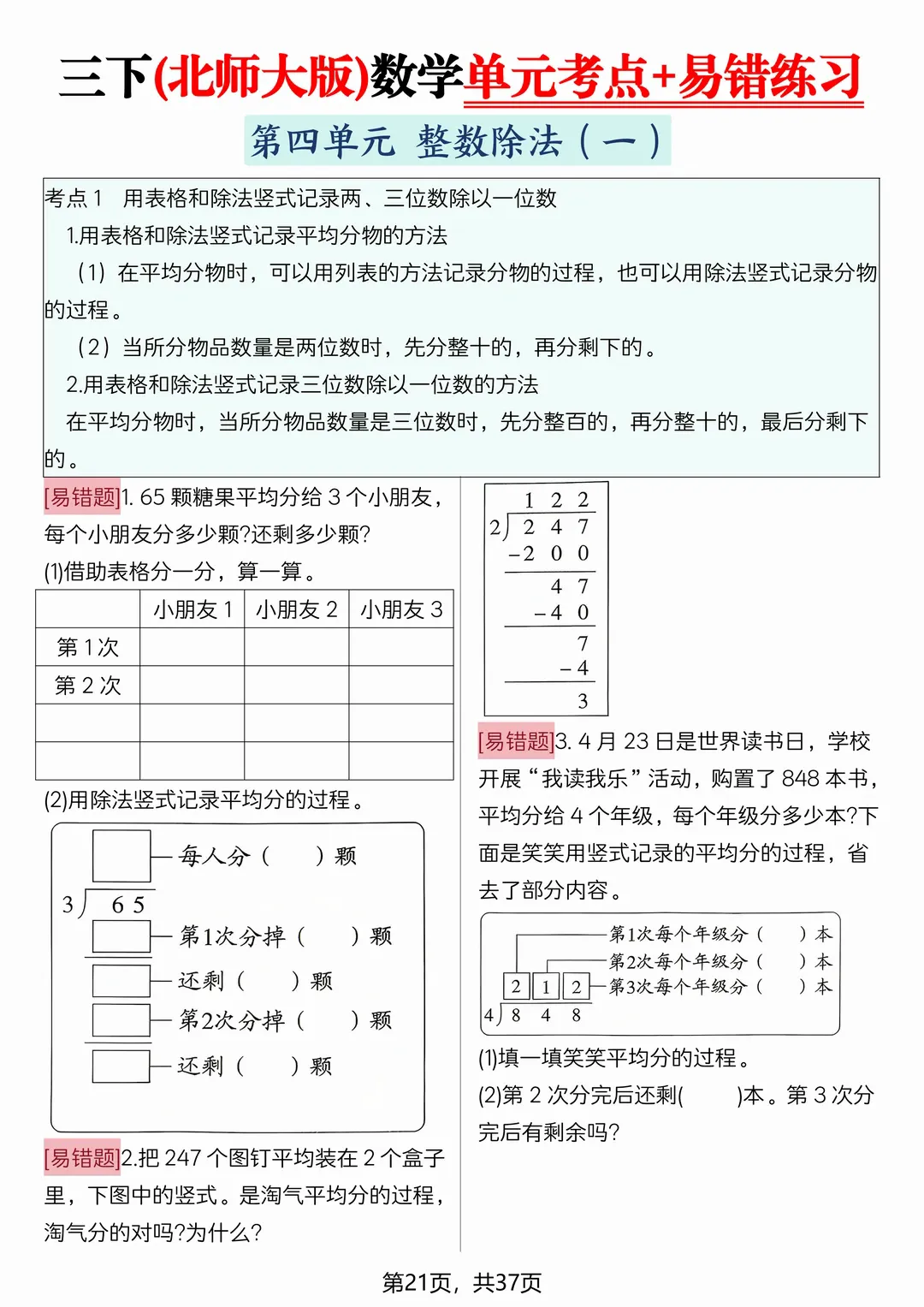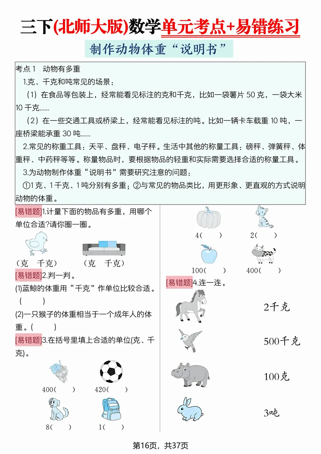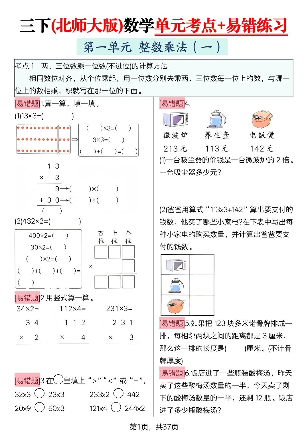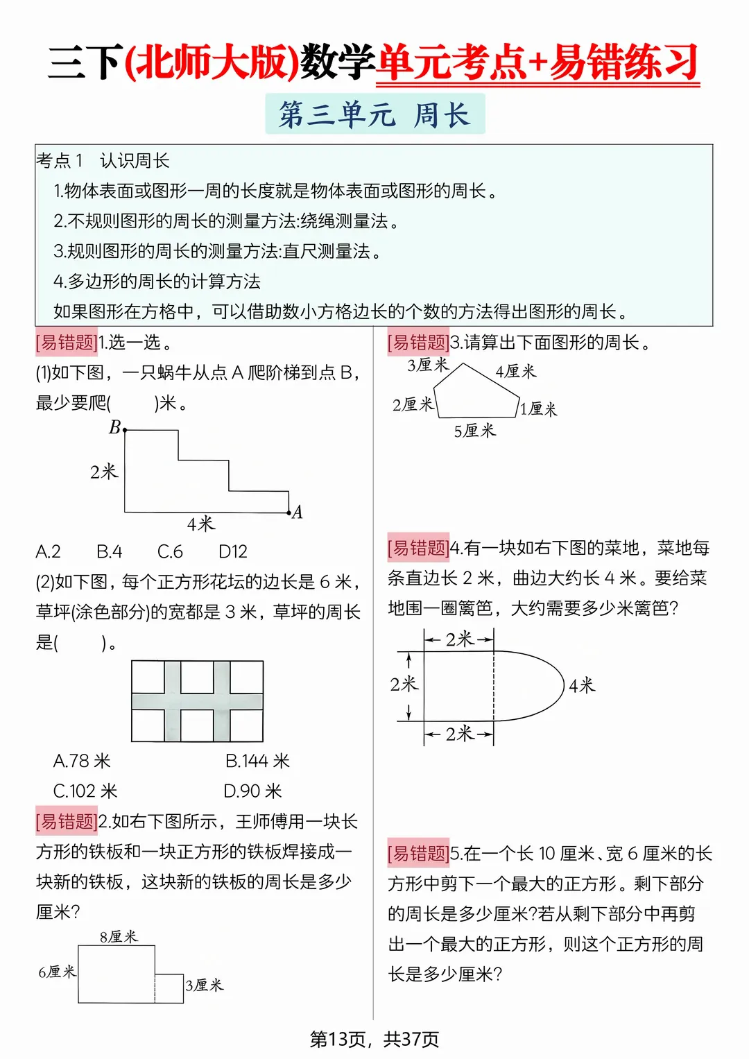 为了帮助孩子查缺补漏,巩固基础,老师特意为大家整理了一份——2026新三年级下册数学(北师大版)《期中期末复习易错专项》(知识点梳理+易错练习+拔尖练习),共38页,完整电子版可打印。。