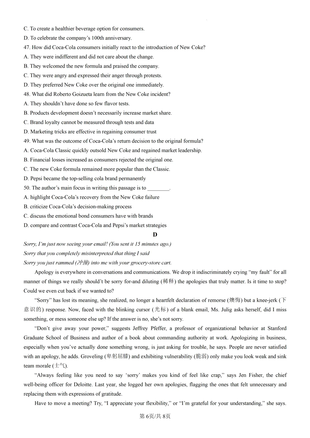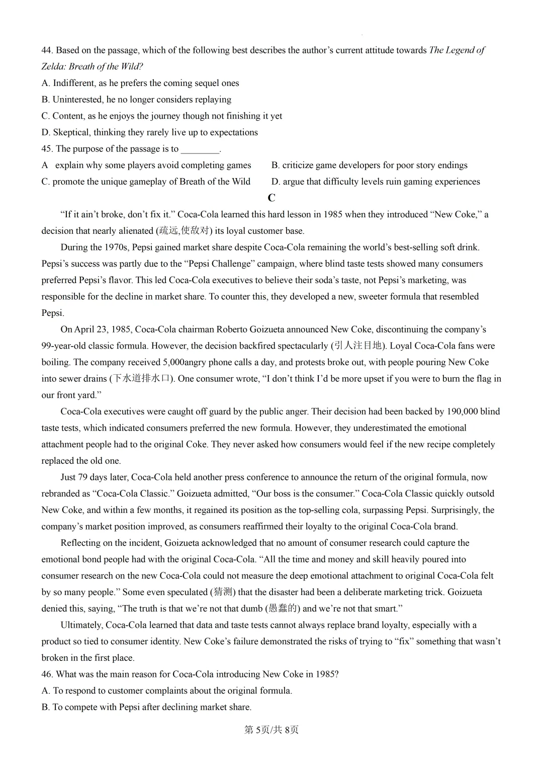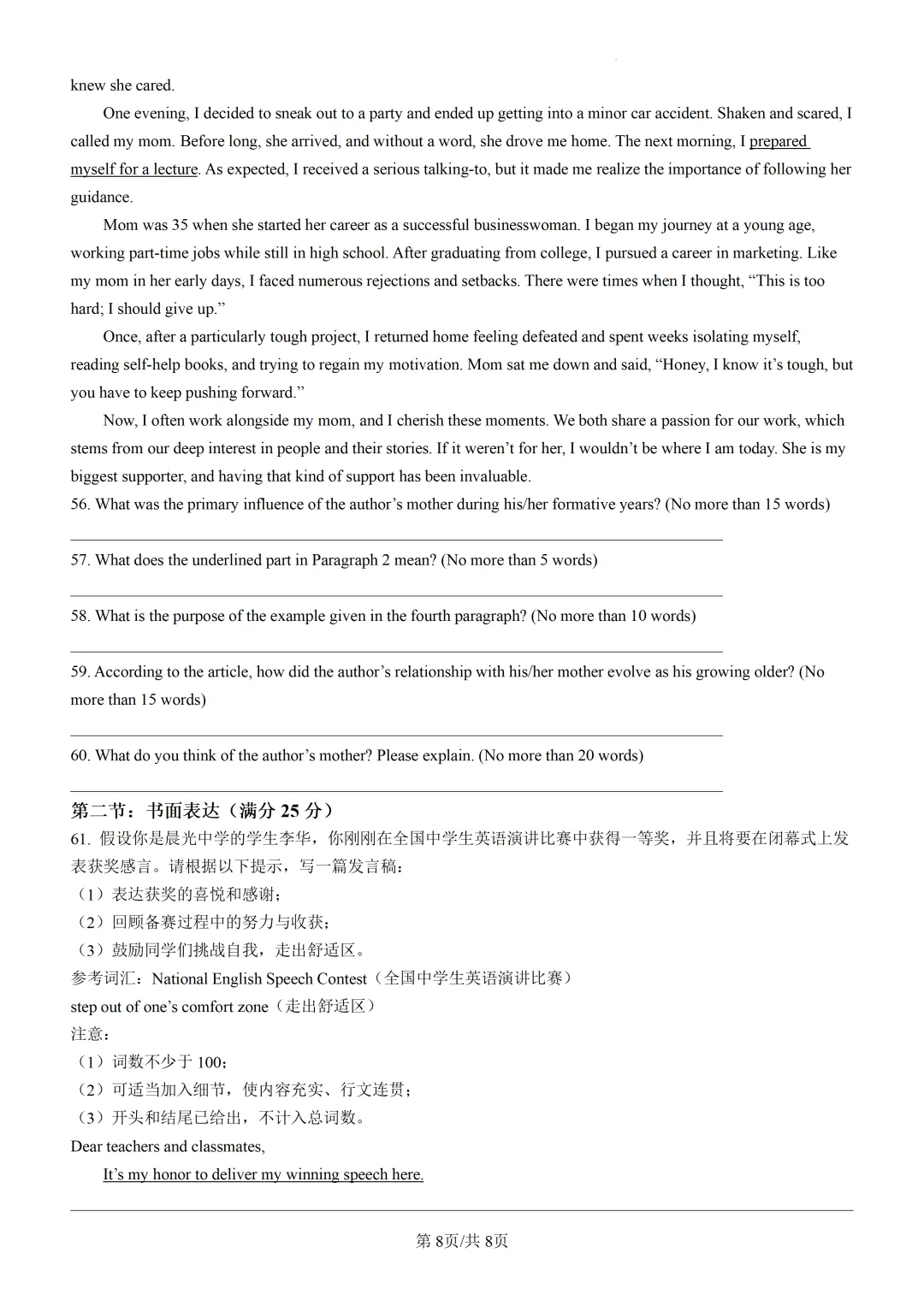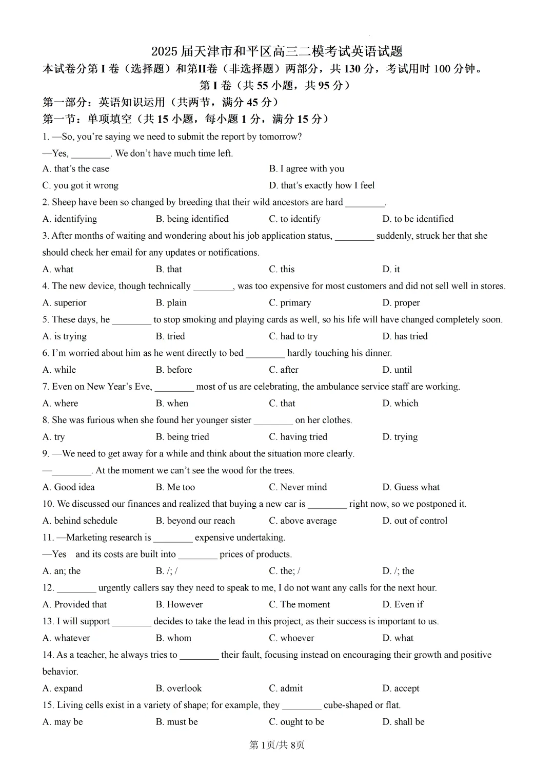 【可下载】2025届天津市和平区高三二模考试英语试题(附解析) 点击上方“蓝字”免费关注! 本套试卷+答案下载入口 关注“卿卿侃古今”公众号 点击左下角阅读原文可下载 相关链接: 2007-2025年天津市高考英语真题汇总(持续更新中~) 2011-2023年天津高考英语听力真题在线测试 【高考英语听力在线测试】高考听力机考模拟试题大全(持续更新中) 【可下载】2025-2026年高中英语试题汇总(附解析)【持续更新中】 【汇总】高中英语月考和期中期末试题(持续更新中~) 【题库】高一英语试题汇编(持续更新中~) 【题库】高二英语试题汇编(持续更新中~) 【题库】高三英语试题汇编(持续更新中~) 【可下载】高三英语上学期期末试题16套(附解析) 【可下载】高二英语上学期期末试题10套(附解析) 【可下载】高一英语上学期期末试题汇9套(附解析) 【可下载】2025-2026学年度高一高二高三开学考试模拟试卷(天津专用)(附解析) 新外研版高中英语高清电子课本、课文原文和译文、单元同步复习资料和试题【持续更新中】 【目录1】高中英语阅读理解限时训练大全(持续更新中~) 【目录2】高中英语完形填空限时训练大全(持续更新中~) 【目录3】高中英语书面表达大全(持续更新中~) 【目录4】高中英语听力训练大全(持续更新中~) 【目录5】高中英语单选题大全(持续更新中~) 【目录6】高中英语语法题大全(持续更新中~) 【目录7】高中英语阅读表达题大全(持续更新中~) 【目录8】科普知识汇总 【目录9】中高考学法知识汇总 【目录10】高考英语真题+名校模拟真题+月考和期中期末试题(持续更新中~) 【目录11】暑期高考英语备考资料大全持续更新中~【汇总】中高考志愿填报资料大全 【汇总】高中英语月考和期中期末试题(持续更新中~) 【汇总】2026届高三英语一模试题(附解析) 【汇总】2025届高三英语一模试题(附解析) 【汇总】2025届高三英语二模试题(附解析) 【汇总】2025届高三英语三模试题(附解析) 【汇总】2024届高三英语一模二模三模试题(附解析) 【汇总】2024届高考英语押题卷(附解析) 【汇总】2025届高三英语周考综合练(附解析) 【题库】高三英语限时训练(持续更新中~) 【模拟】2025届高三英语听力机考模拟试题在线测试 【高考词汇】(新)外研版高中英语全七册词汇表(附音频) 【中考词汇】初中英语外研版必备单词表(完整版),可打印 建议收藏保存 点击阅读原文查更多