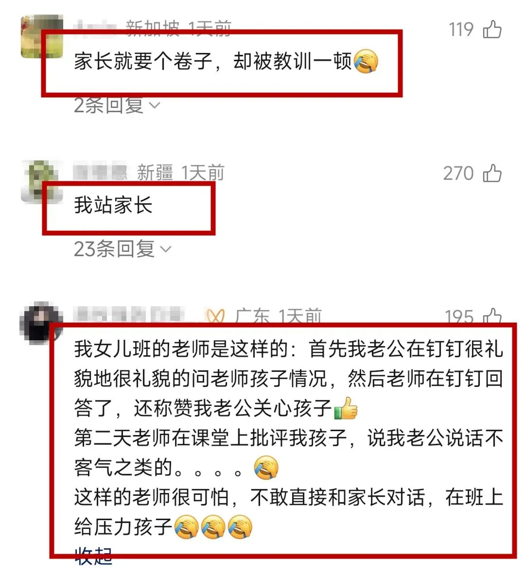 不少网友表示站在家长这边,认为家长的求助合情合理,老师的反应过于偏激,甚至有“小题大做”之嫌。