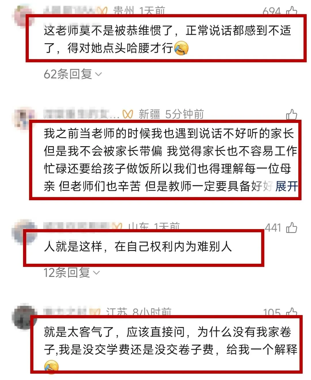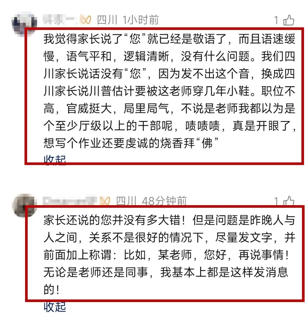 也有网友站在老师这边,认为家校沟通中,尊重是相互的,家长的表述确实存在可改进之处,老师的愤怒也并非毫无缘由。