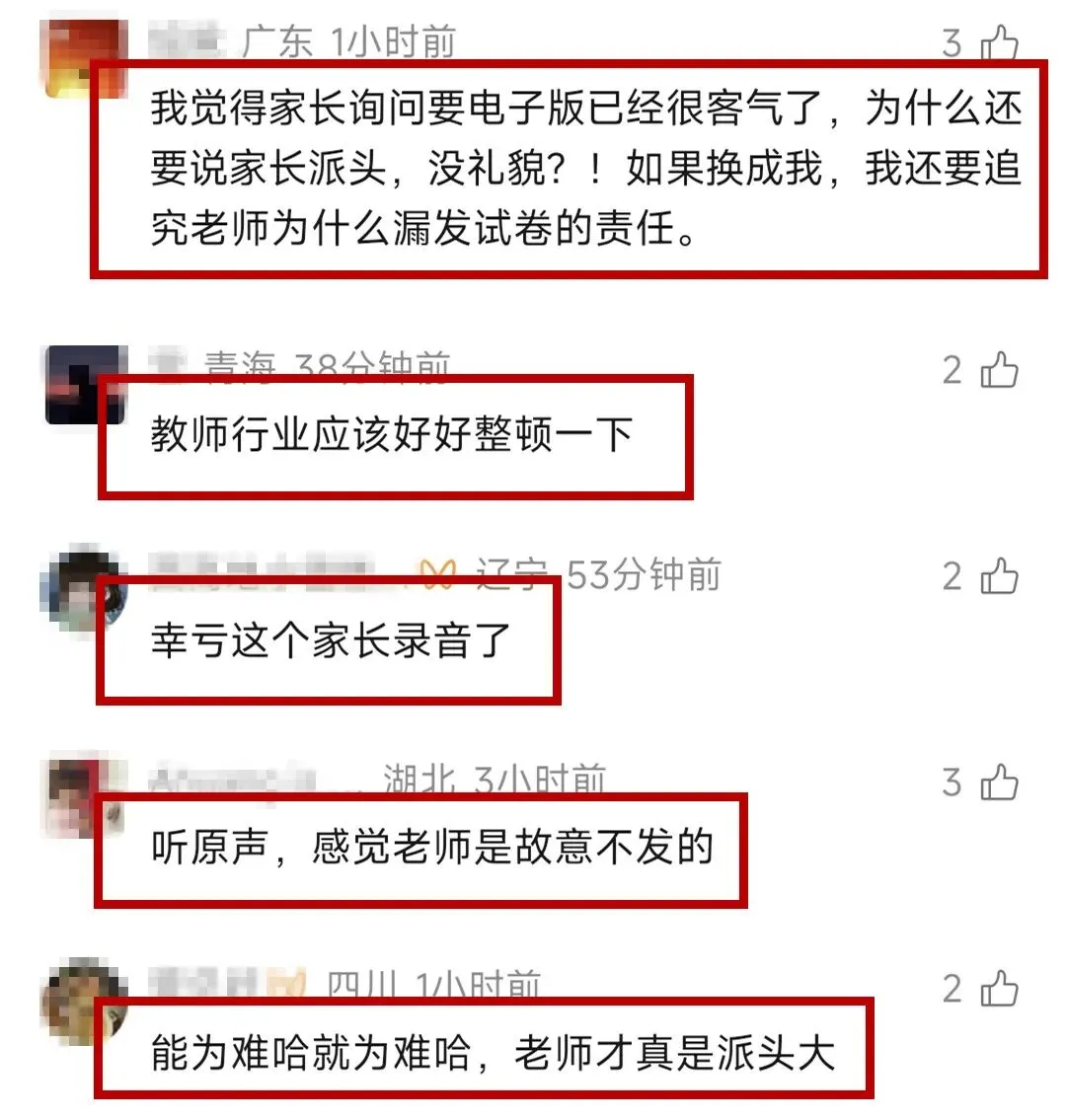 “孩子让您给发个电子版” ,家长索要试卷被老师怒斥“派头太大”!教育局:老师停课调查