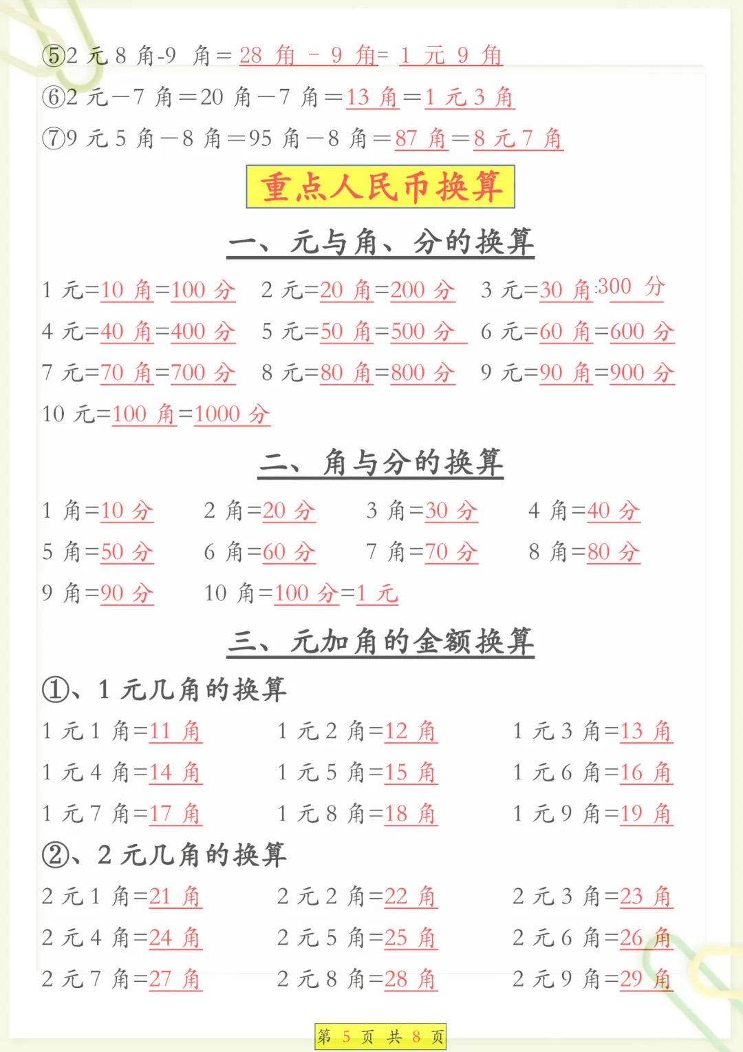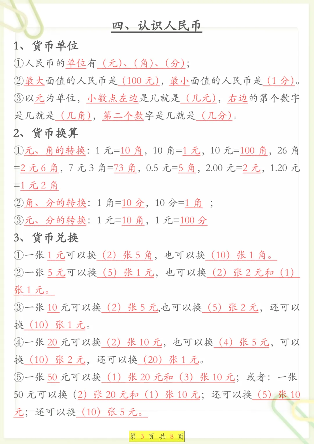 一年级下数学全册知识点汇总,共8页,电子版可下载可打印,这份资料围绕一年级下册数学学习内容进行系统整理,涵盖多个核心知识点与专项训练内容,便于孩子在课后复习、查漏补缺,也方便家长快速把握本册学习重点。内容精炼实用,适合日常巩固和考前梳理,需要的家长可以及时保存打印出来,让孩子练一练、记一记。
