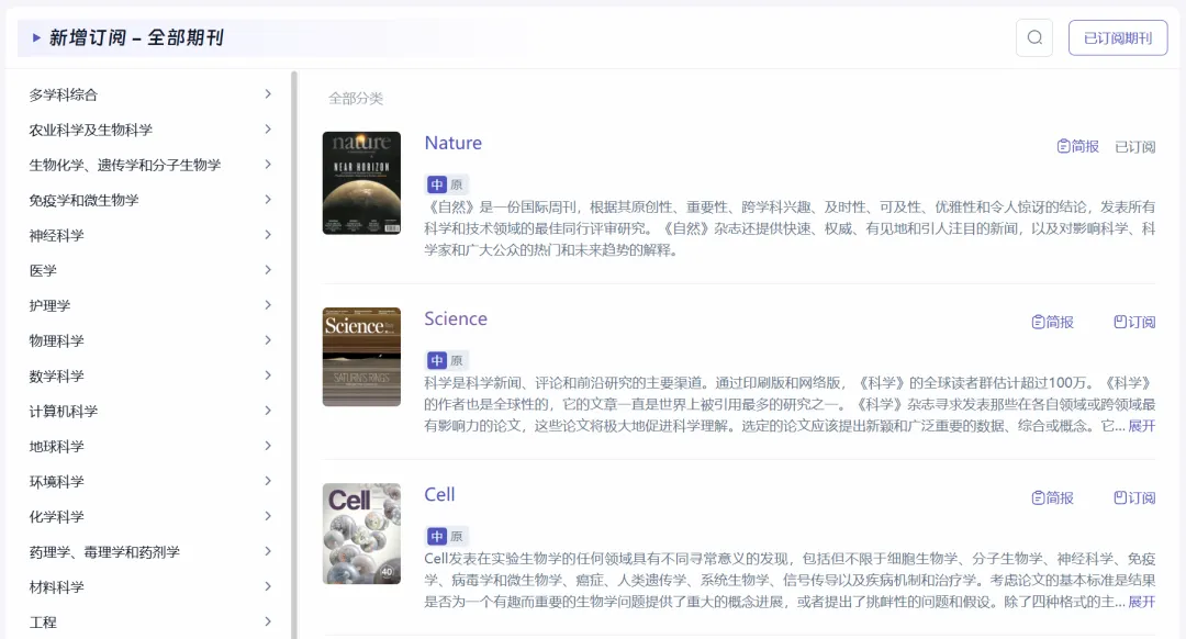 可以一键订阅感兴趣的关键词,帮你第一时间了解相关领域最新研究进展。