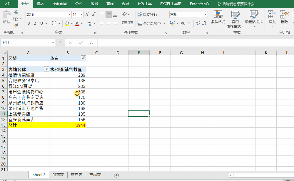 技巧3:按筛选内容拆分透视表根据筛选区域,按区域拆分透视表,操作示例如下: