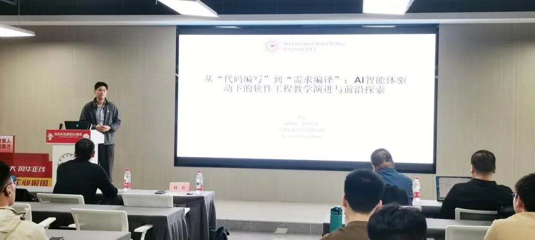 上海交通大学国家级青年人才林云教授以《从“代码编写” 到 “需求编译”:AI 智能体驱动下的软件工程教学演进与前沿探索》为题,系统解析 AI 智能体对软件工程教育的重构路径。林云教授从软件工程宏观视角出发,提出 AI 时代的 “需求编译” 新范式,指出 AI 浪潮下软件工程对代码实现的关注度有所降低,对需求精准落地与验证的要求大幅提升,人才培养的核心重心与教学重点需随之动态调整。