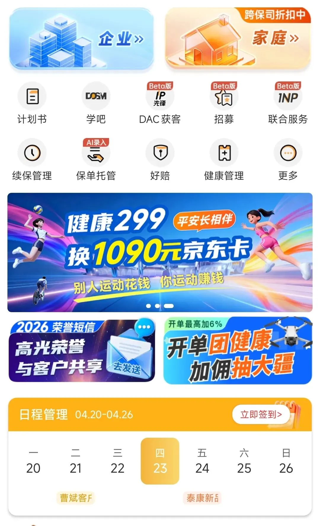 快保首页将 “家庭” 与 “企客 ”平级展示,看似只是增加了一个tab,实则宣告了公司战略的重大转向:做强企业服务,拓宽顾问的业务边界。过去顾问只能卖个人保单,现在可以切入企业团险、员工福利、财产险等万亿级市场。这不仅是产品线的扩展,更是从业者身份的重塑 —— 从 “保险销售” 升级为 “企业风险管理顾问” 。