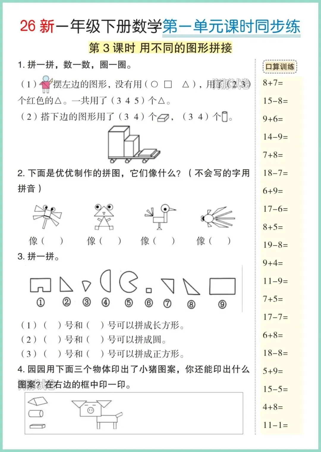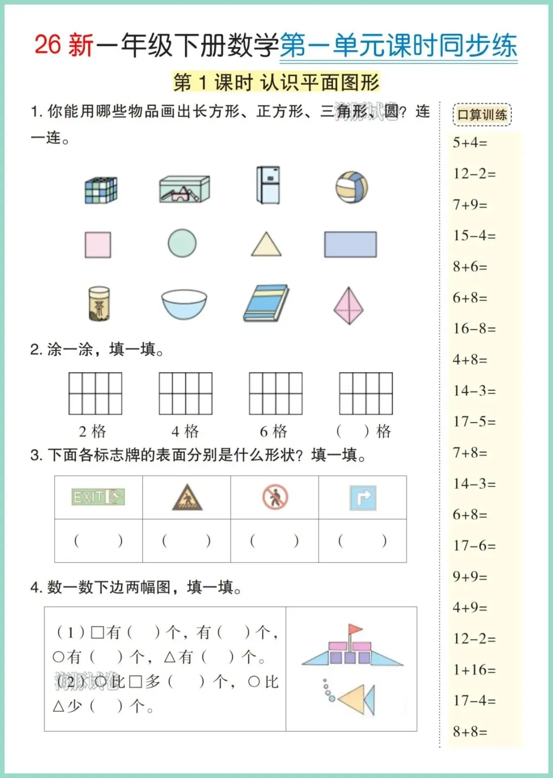 25年春人教版一年级下册数学全册《课时同步练》新鲜出炉,共38页精美电子版,一键就能打印!每课一练,口算、应用、思维题全覆盖,题目由浅入深,贴合课本进度,既帮孩子夯实20以内加减法,又悄悄培养审题习惯,家长陪写不抓狂,孩子独立完成更自信。每天10分钟,同步课堂、查漏补缺,轻松领跑期末!想让孩子学得扎实又快乐,就趁现在把这份小册子打印出来,天天练一练吧!