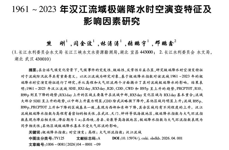 1961~2023年汉江流域极端降水时空演变特征及影响因素研究