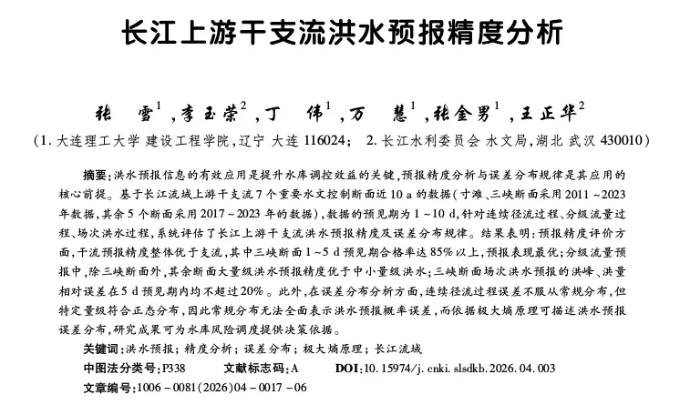 《水利水电快报》好文优选 | 长江上游流域水文预报系统及典型洪水反演分析
