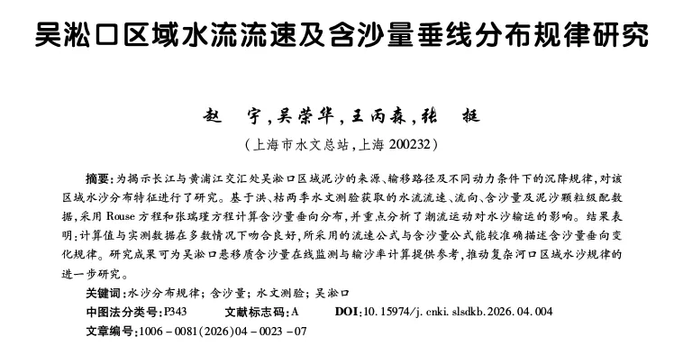 吴淞口区域水流流速及含沙量垂线分布规律研究