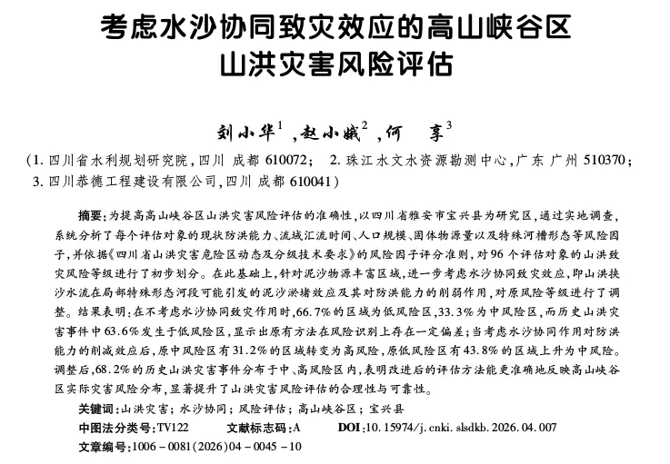 考虑水沙协同致灾效应的高山峡谷区山洪灾害风险评估