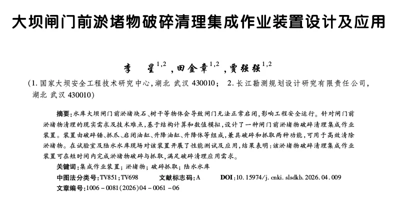 大坝闸门前淤堵物破碎清理集成作业装置设计及应用