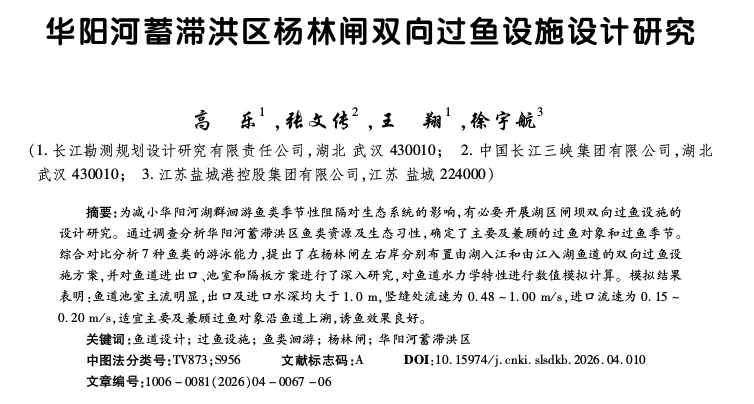 华阳河蓄滞洪区杨林闸双向过鱼设施设计研究