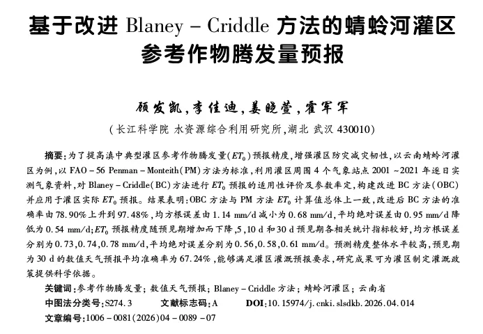 基于改进Blaney-Criddle方法的蜻蛉河灌区参考作物腾发量预报