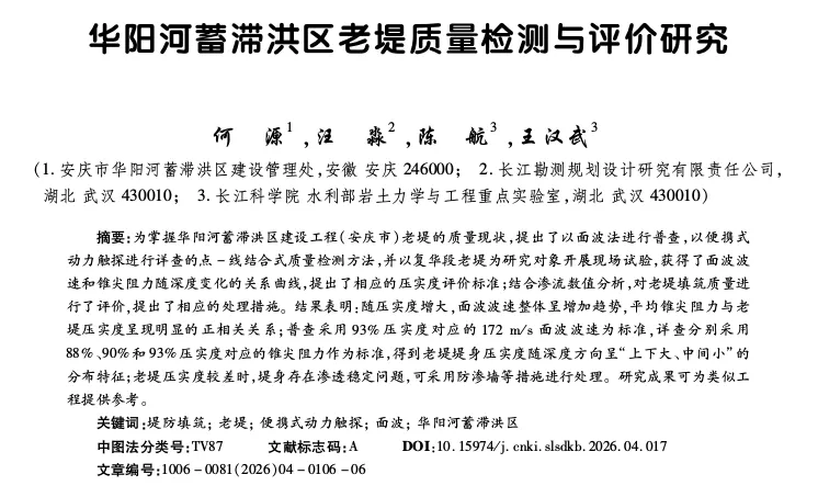 华阳河蓄滞洪区老堤质量检测与评价研究