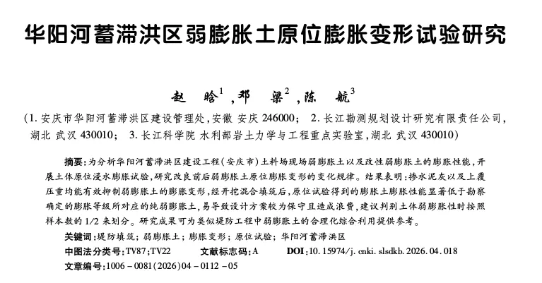 华阳河蓄滞洪区弱膨胀土原位膨胀变形试验研究