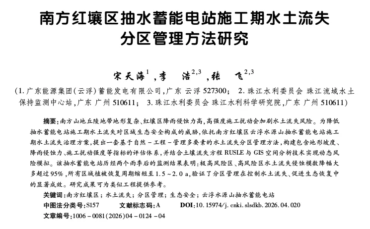 南方红壤区抽水蓄能电站施工期水土流失分区管理方法研究